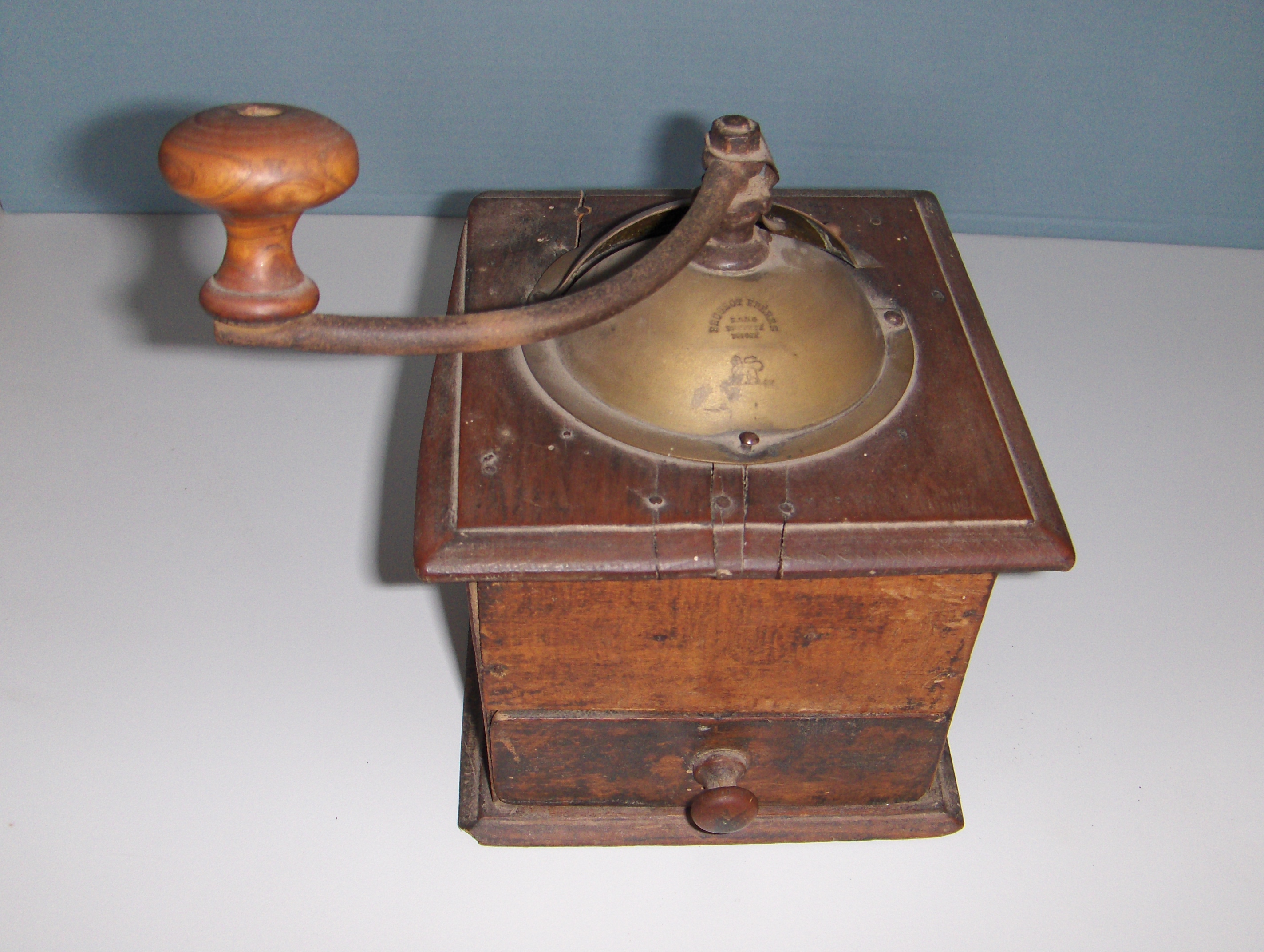 Moulin à café mécanique marque Peugeot Frères, bois et métal, s.d. [20e siècle].