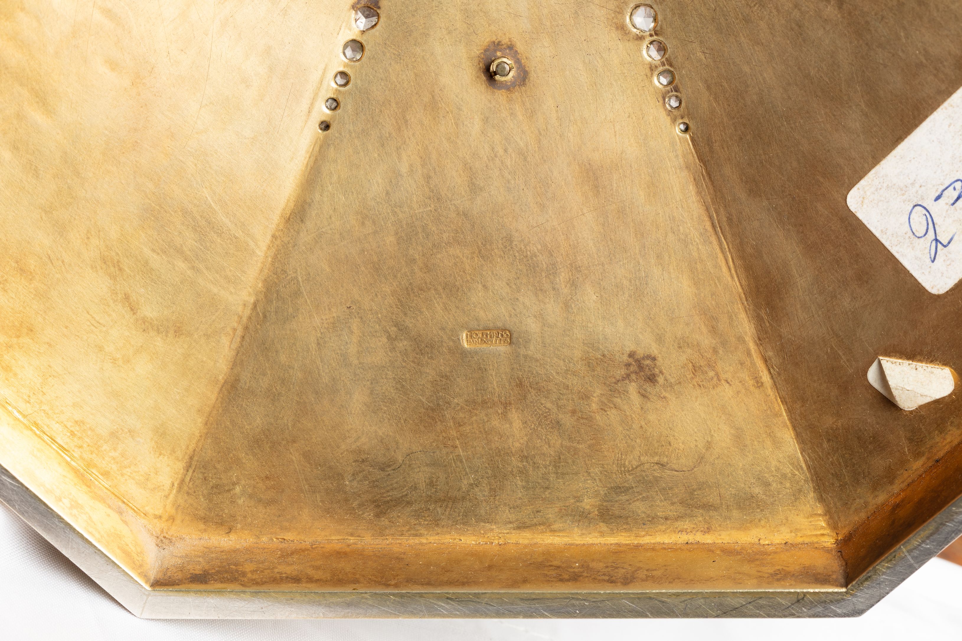 L’orfèvre Henri-Joseph Holemans s’est formé aux arts décoratifs à l’École Saint-Luc de Saint-Gilles, dont il est diplômé en 1919. C’est vraisemblablement sa rencontre avec l’orfèvre Théodore Bisschop qui le met sur la voie du travail du métal précieux. Il aurait été initié à l’orfèvrerie dans les tranchées ; il approfondit cette pratique après la guerre et ouvre son propre atelier en 1920, reprenant le fonds de commerce de Bisschop. Travaillant d’abord dans une optique historisante, il se tourne ensuite vers un style plus épuré, caractéristique de l’Art Déco dont il est un des représentants belges majeurs pour l’orfèvrerie, tout en conservant une profonde inspiration puisée dans les formes de la nature. Ainsi, il s’inscrit également dans le sillage de l’École d’Art de Maredsous, qui prône une esthétique épurée, en reconnexion avec la symbolique profonde de l’Église. Dans ses réalisations, l’orfèvre utilise des matériaux précieux et variés dont il maîtrise les spécificités propres, aussi bien techniques qu’esthétiques. Comme Marcel Wolfers, Holemans maîtrise la technique de la laque japonaise.