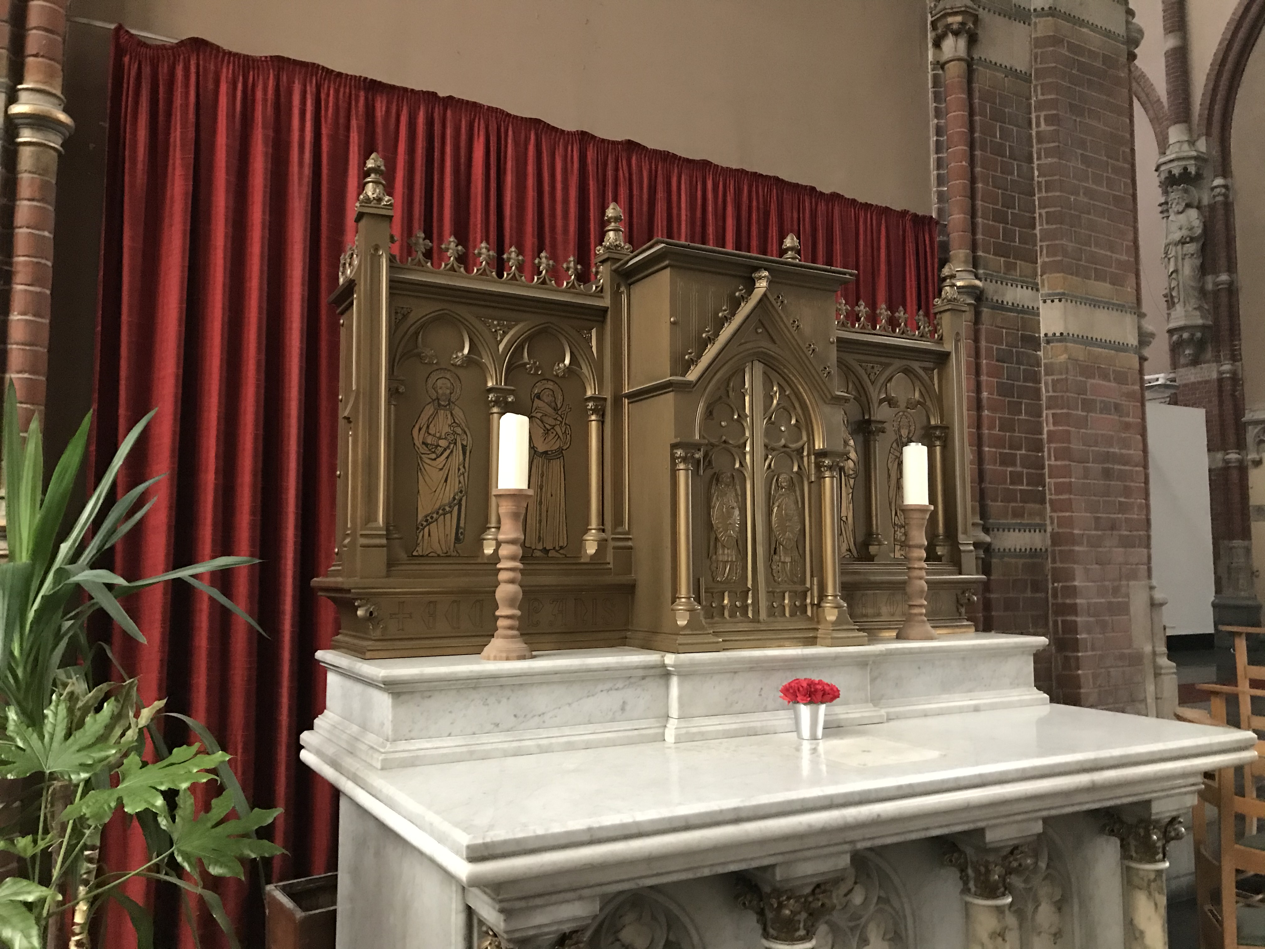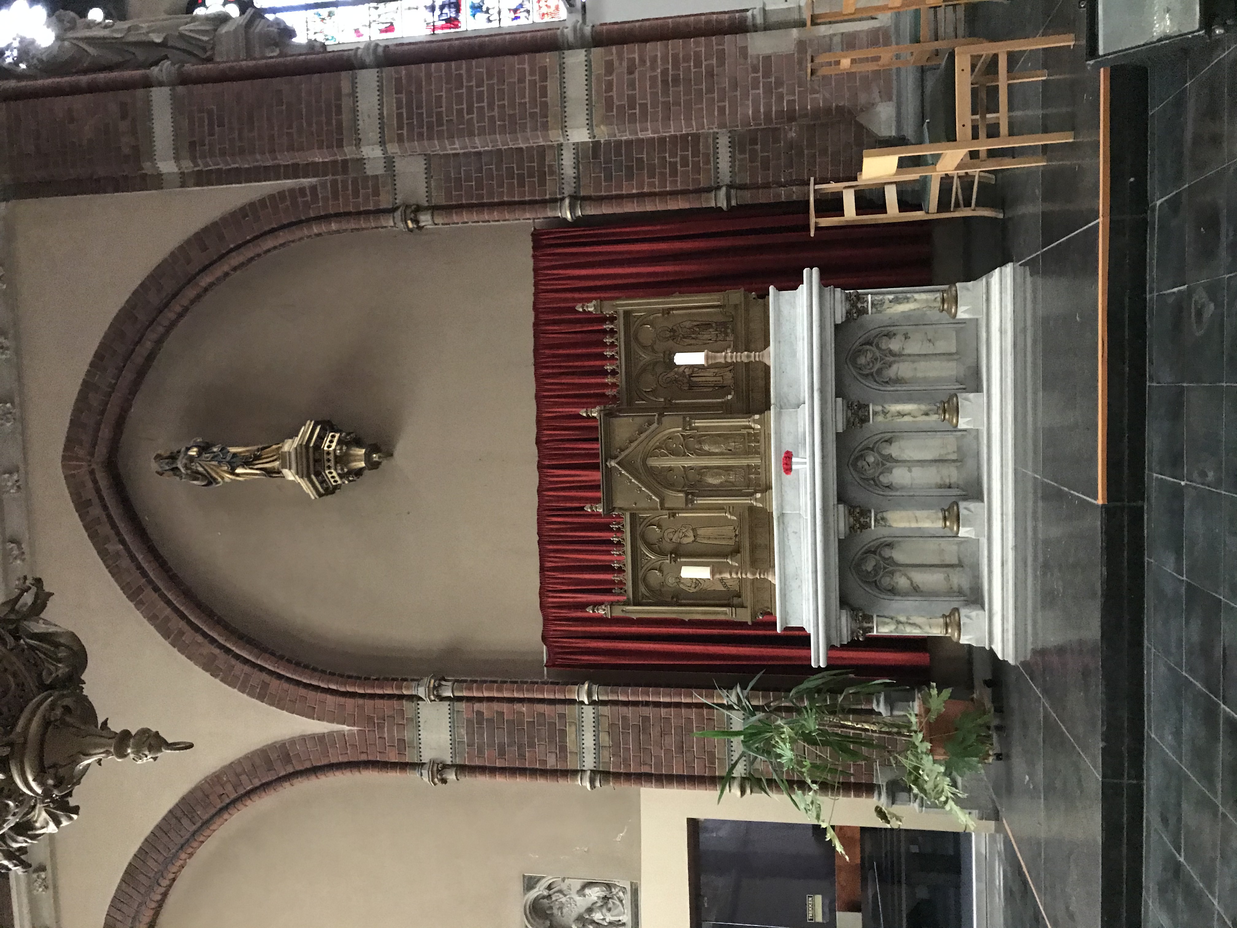 "Ecce panis angelorum" ('Voici le pain des anges' Gravé sur la face avant du gradin)