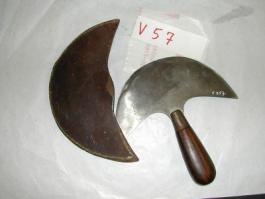 Couteau en forme de lune, outil de tanneur, avec étui, s.d. [20e siècle].