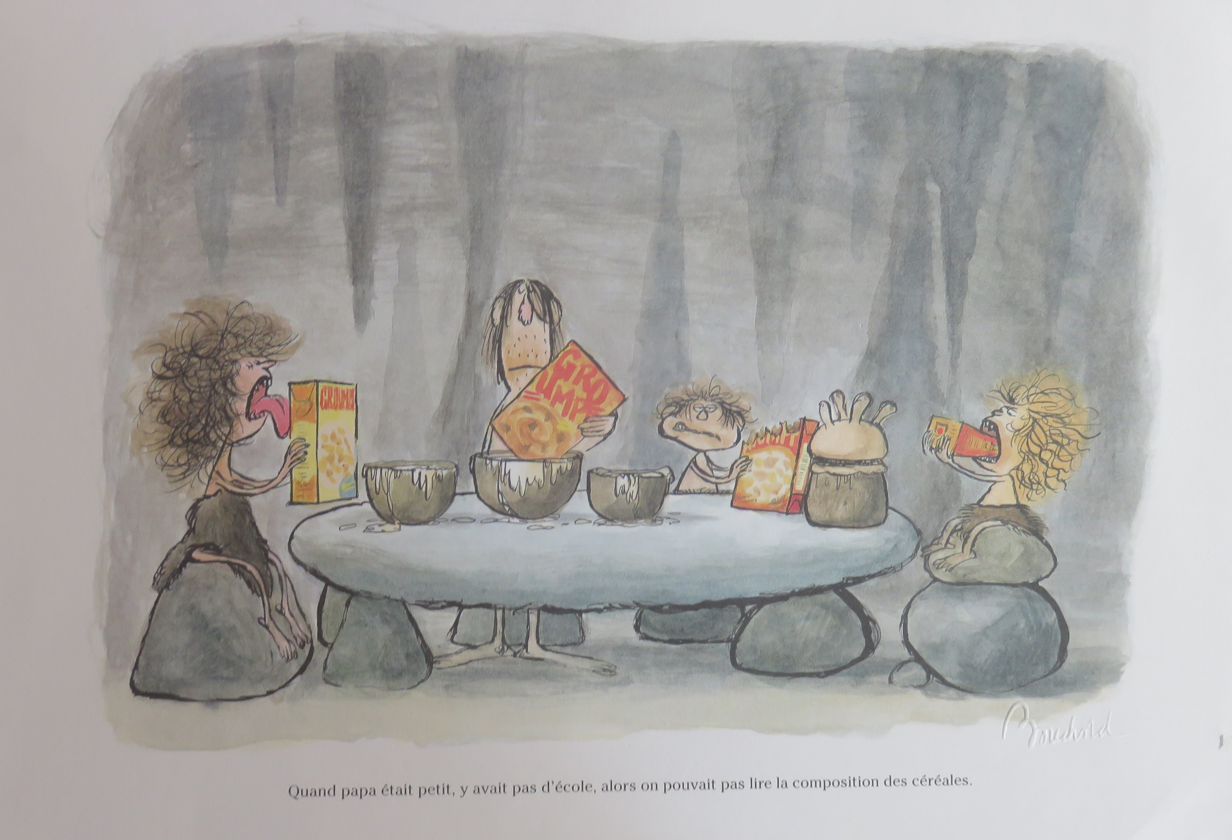 "Quand papa était petit, y avait pas d'école, alors on ne pouvait pas lire la composition des céréales."