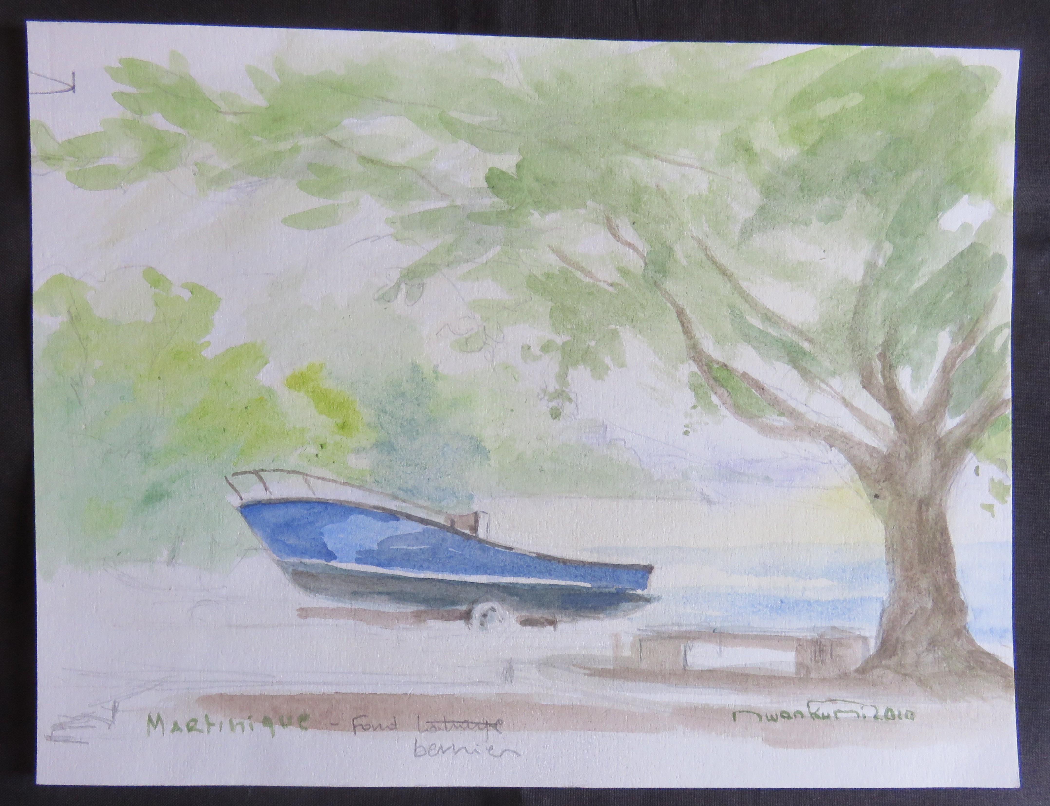 Illustration inédite - Bateau dans une crique en Martinique