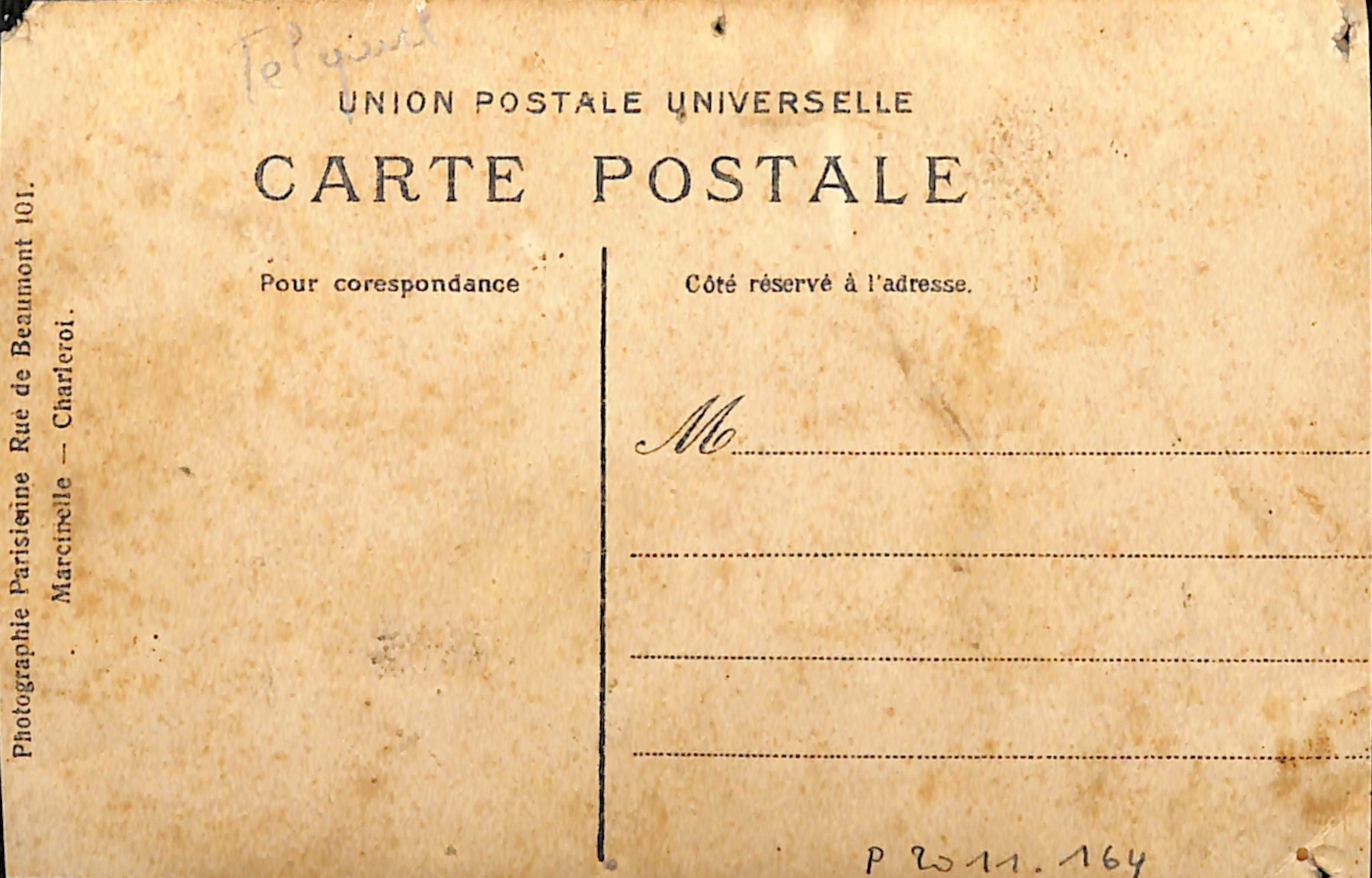 Carte-vue Habitants de Marcinelle victimes de la catastrophe minière du Bois de Cazier du 7 août 1906, éd. Reichling - Photographie Parisienne (Marcinelle), s.d.