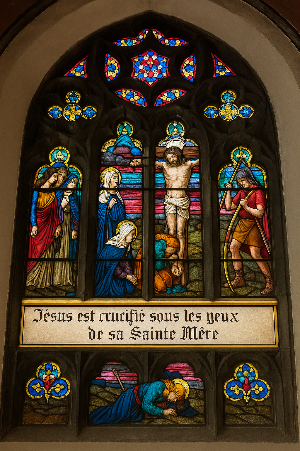 Jésus est crucifié sous les yeux de sa sainte mère. © Etablissement de culte Saint-Antoine à Etterbeek, 2025