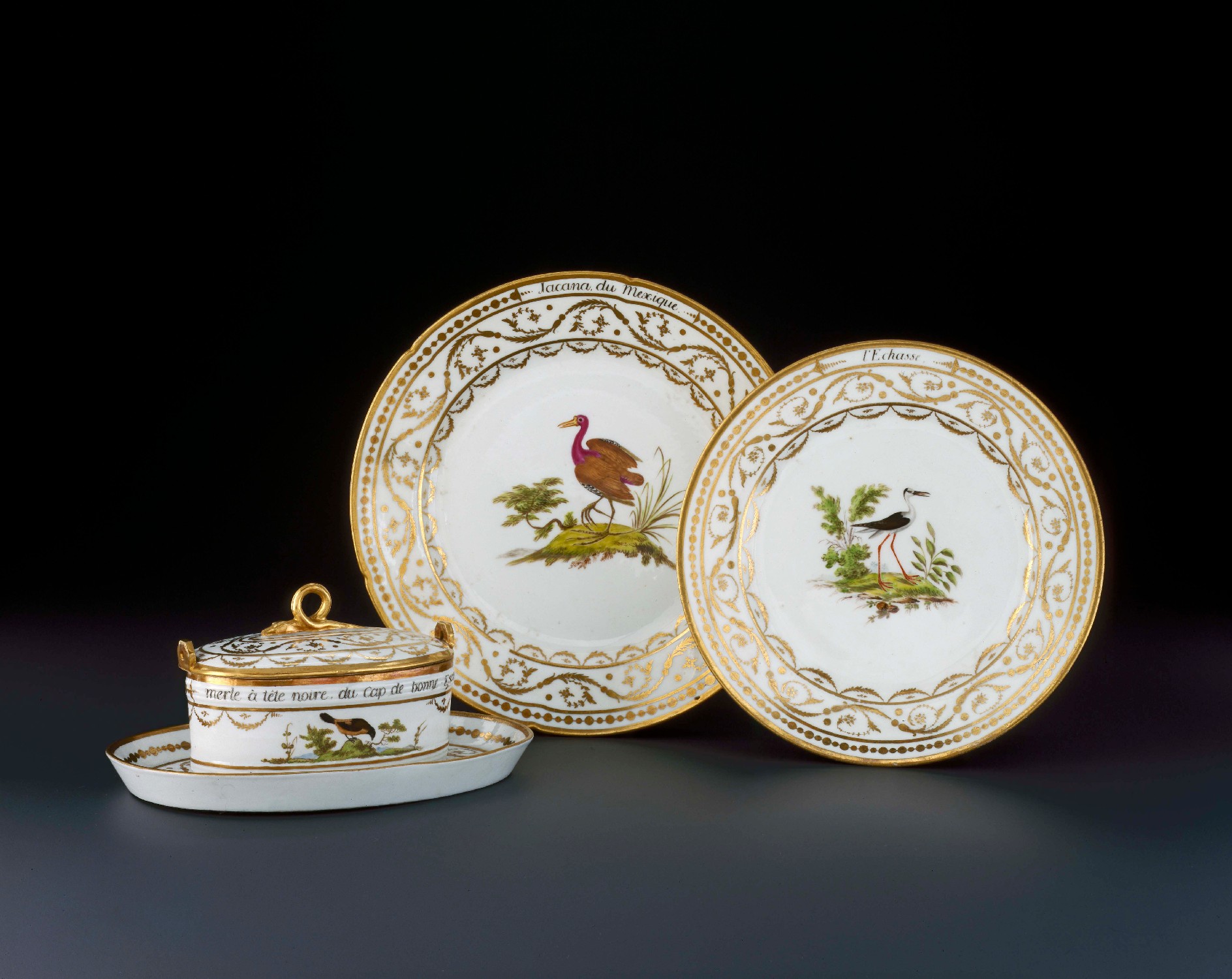 Ensemble de quatre pièces décorées d'oiseaux de Buffon