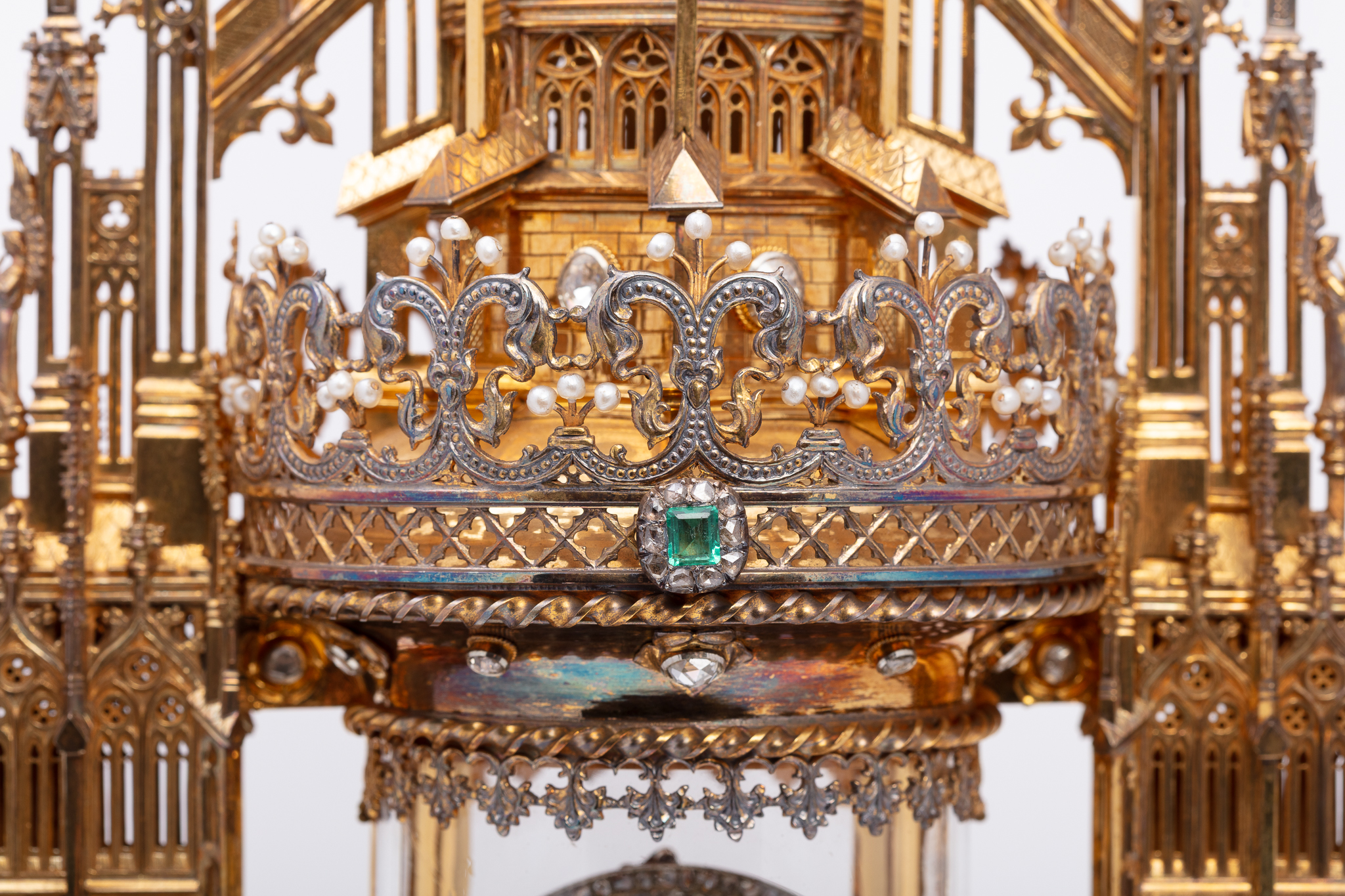 - matières minérales > pierre fine (brillants en cabochons, bague avec pierre verte entourée de brillants, petites perles)