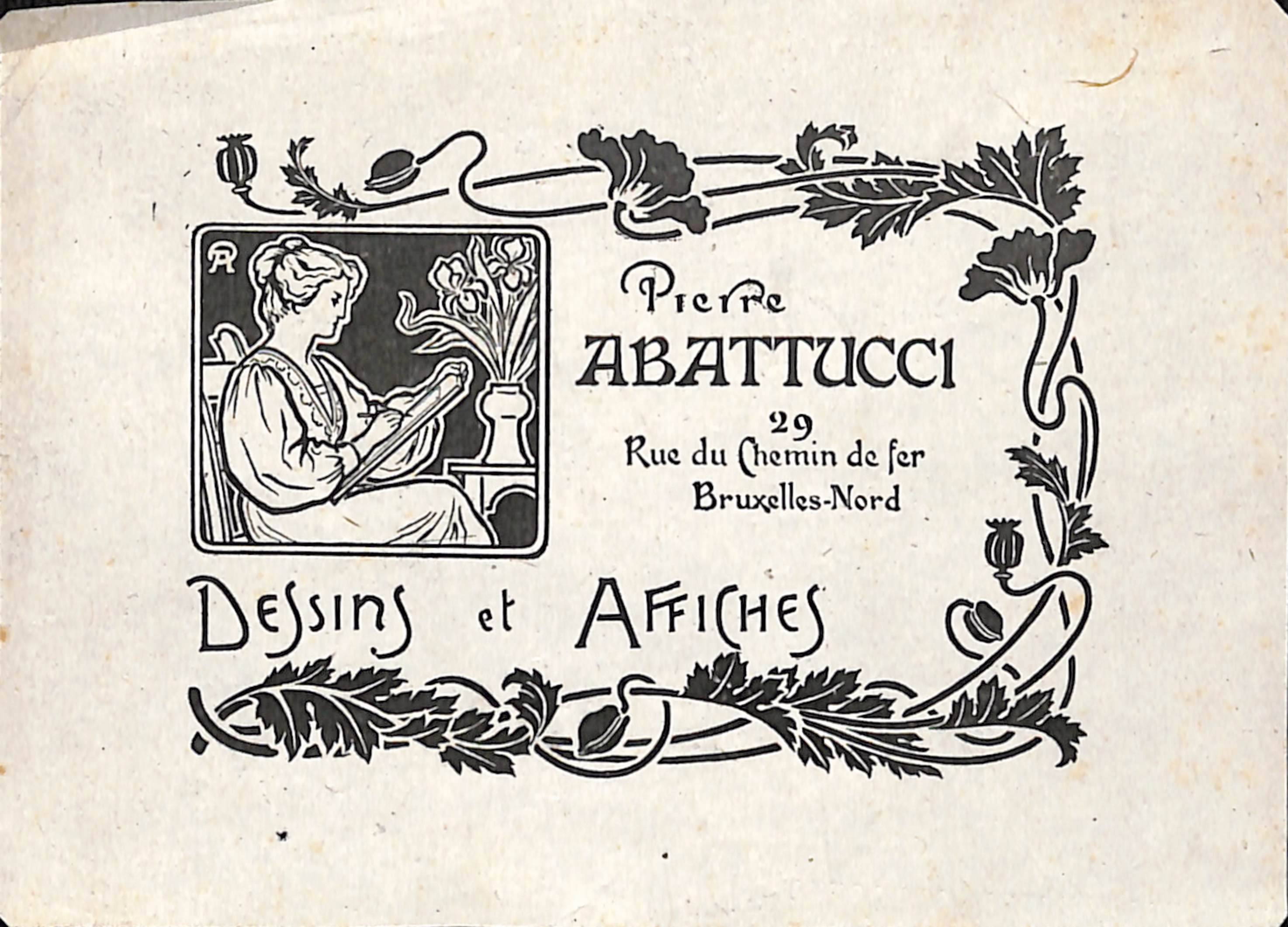 Carte de visite Pierre Abattucci, dessins et affiches, Rue du Chemin de fer, 29 (Saint-Josse-ten-Noode), s.d. [vers 1900].