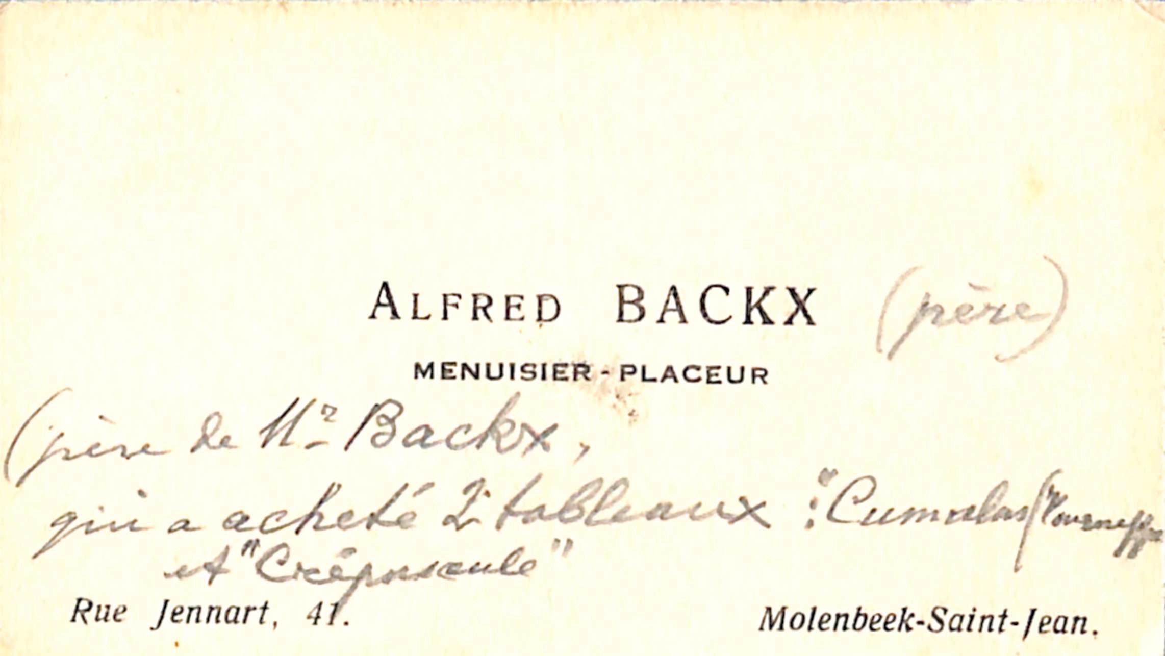 "(père) / (père de Mr Backx, qui a acheté 2 tableaux : "Cumulus (... ?) et "Crépuscule""