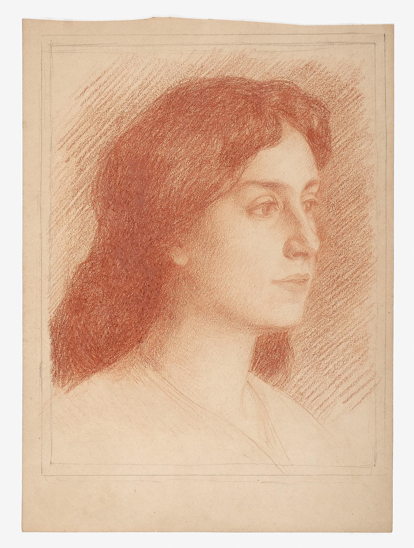 Pierre Abattucci, sans titre (Portrait en buste d'une jeune femme), sanguine et crayon, s.d.