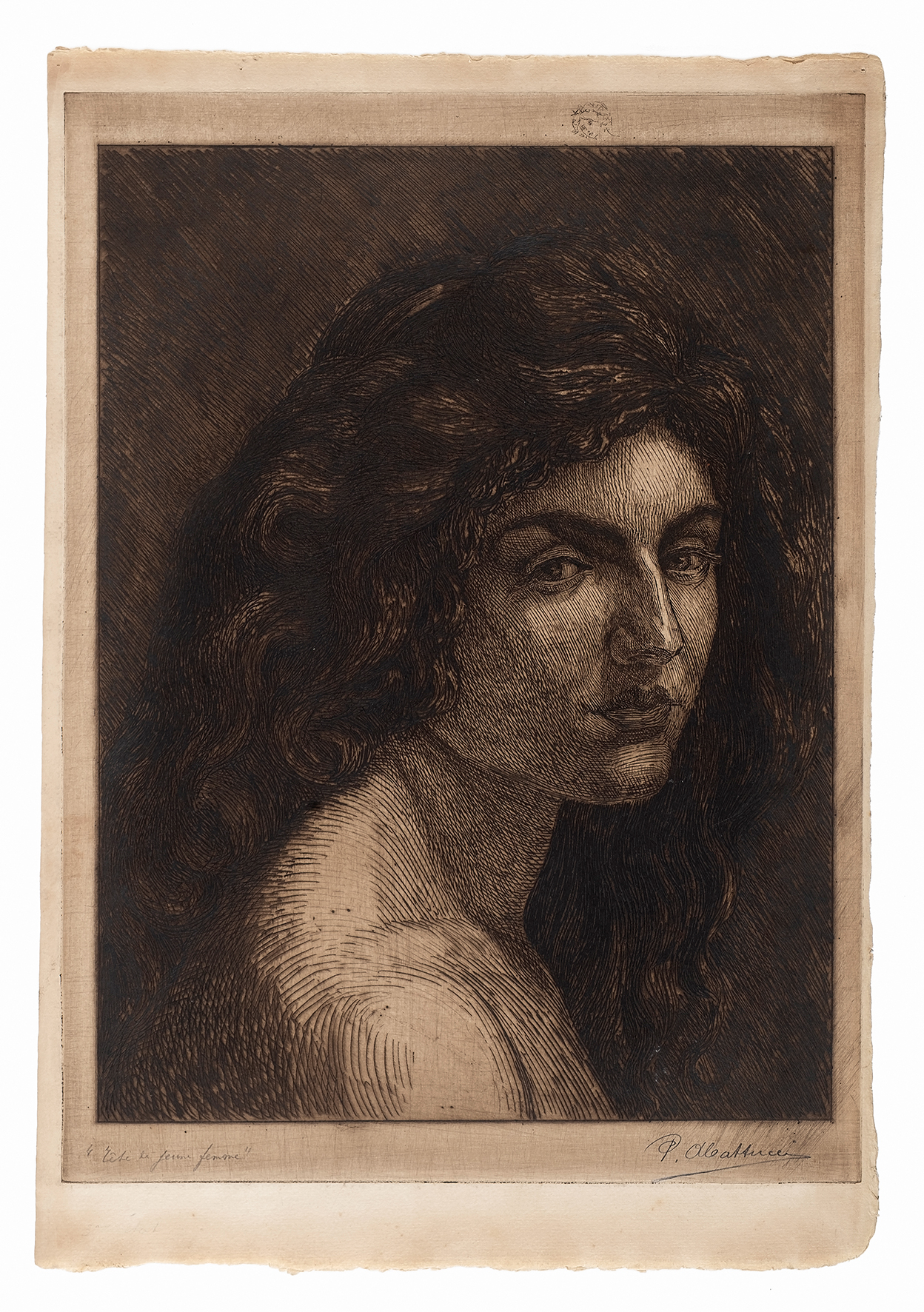 Pierre Abattucci, Tête de jeune femme, gravure, s.d.