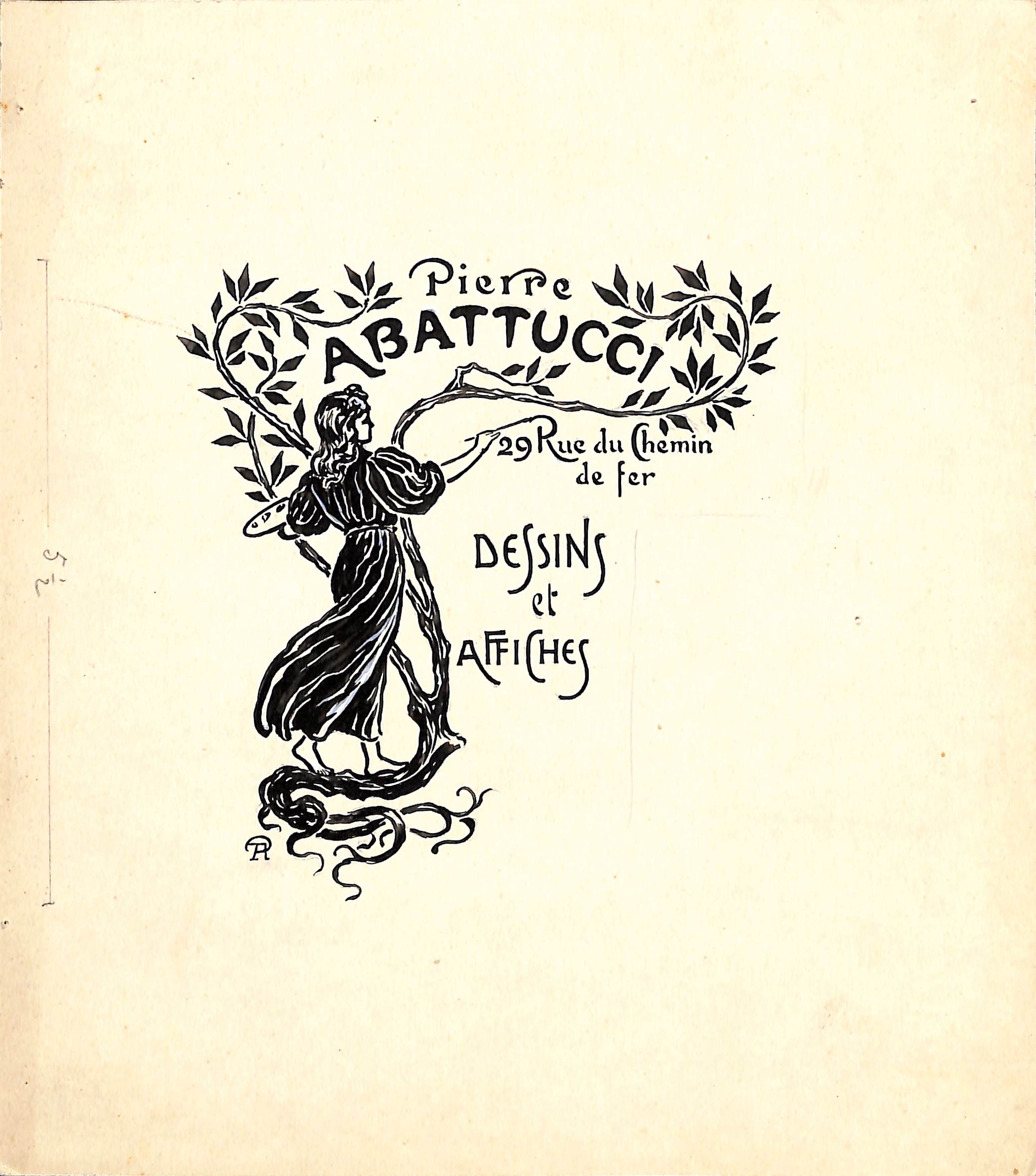 Pierre Abattucci, Projet de carte de visite, encre de Chine, s.d. [vers 1900].