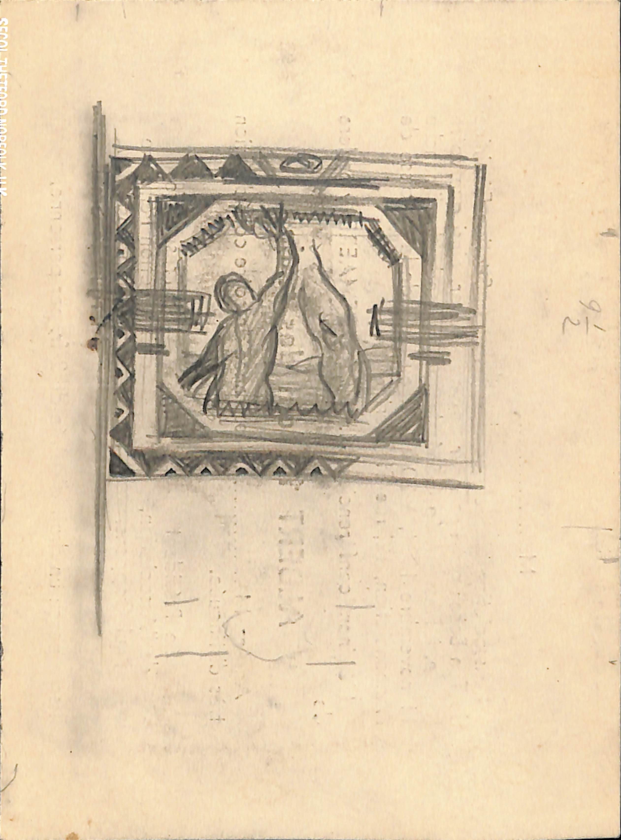 s.d. (Dessin réalisé sur un carton d'invitation à une conférence en novembre 1934.)