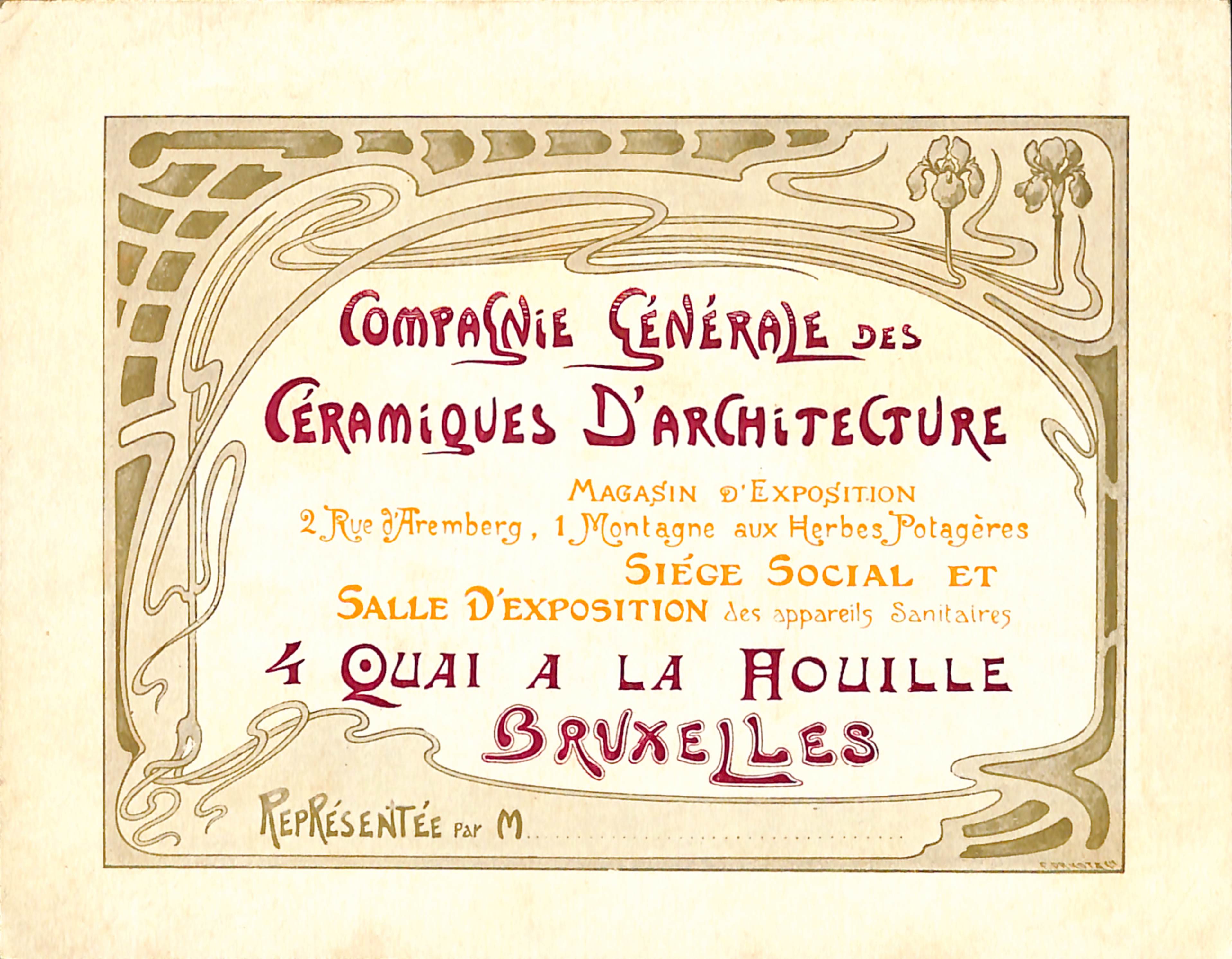 Pierre Abattucci, Projet de carte de visite Compagnie générale des céramiques d'architecture, Quai à la Houille, 4 (Bruxelles), s.d. [vers 1900].
