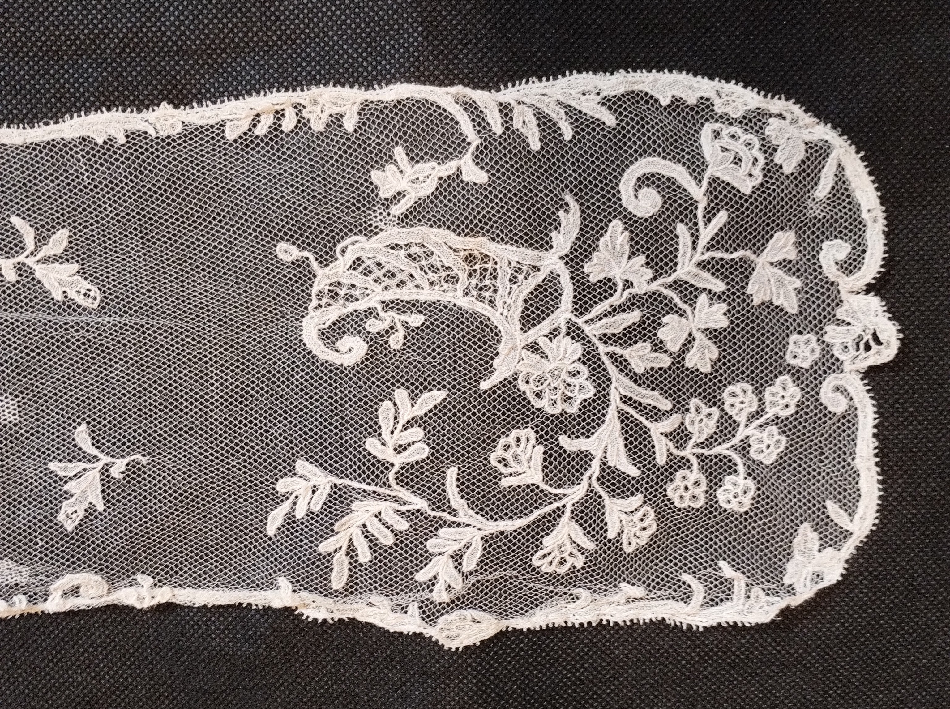 Application de dentelle et broderie à l'aiguille sur tulle mécanique