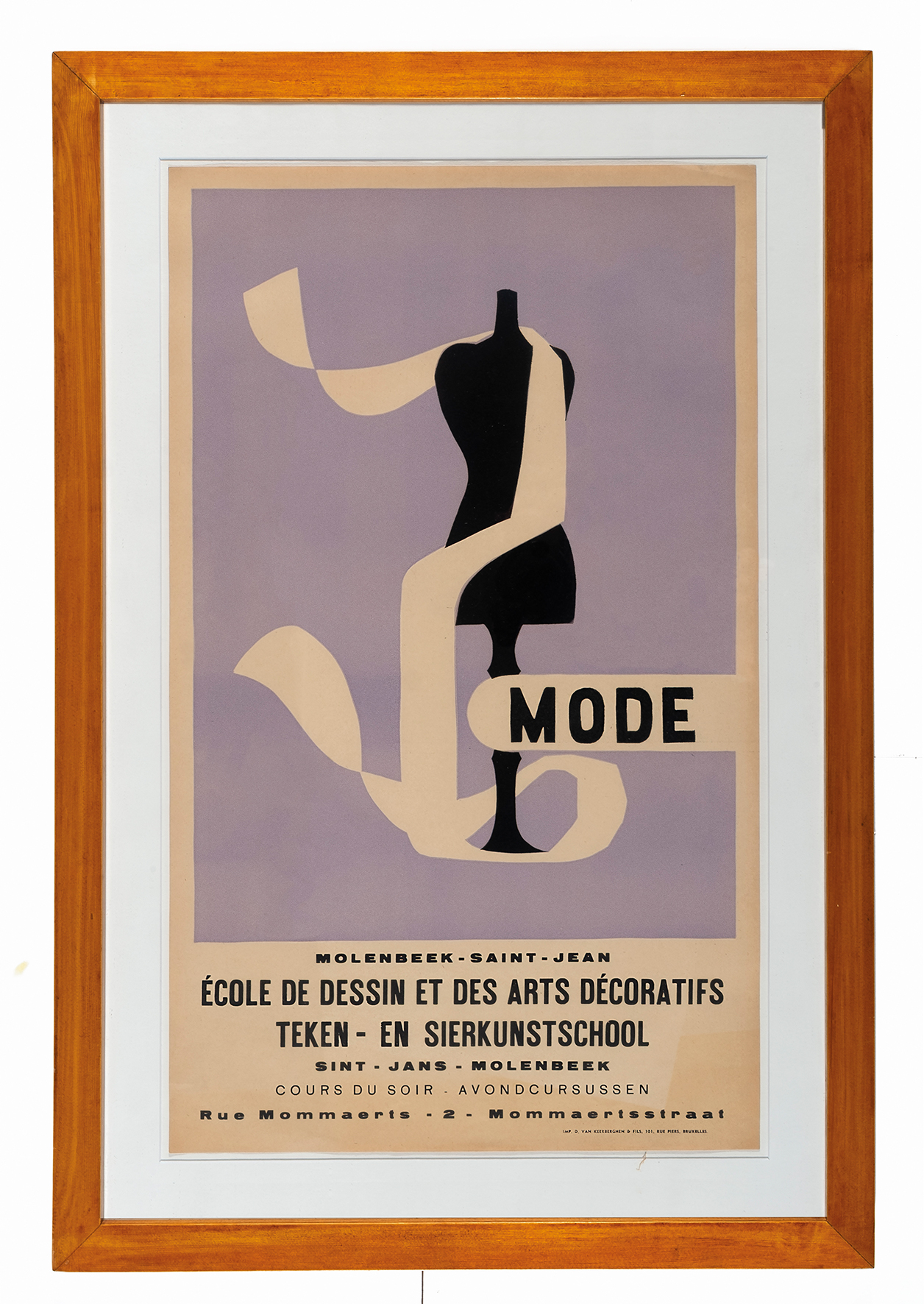 Affiche publicitaire Cours de mode de l’Académie de dessin de Molenbeek-Saint-Jean, impr. D. Van Keerbergen et fils (Molenbeek-Saint-Jean), s.d.
