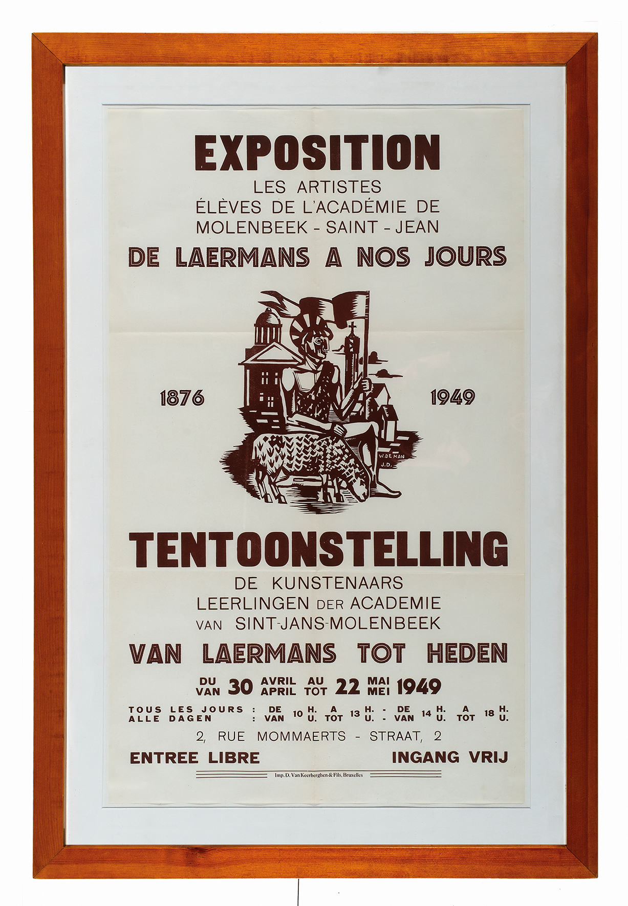 Affiche Exposition "De Laermans à nos jours" à l'Académie de dessin de Molenbeek-Saint-Jean, impr. D. Van Keerberghen & fils, 1949.