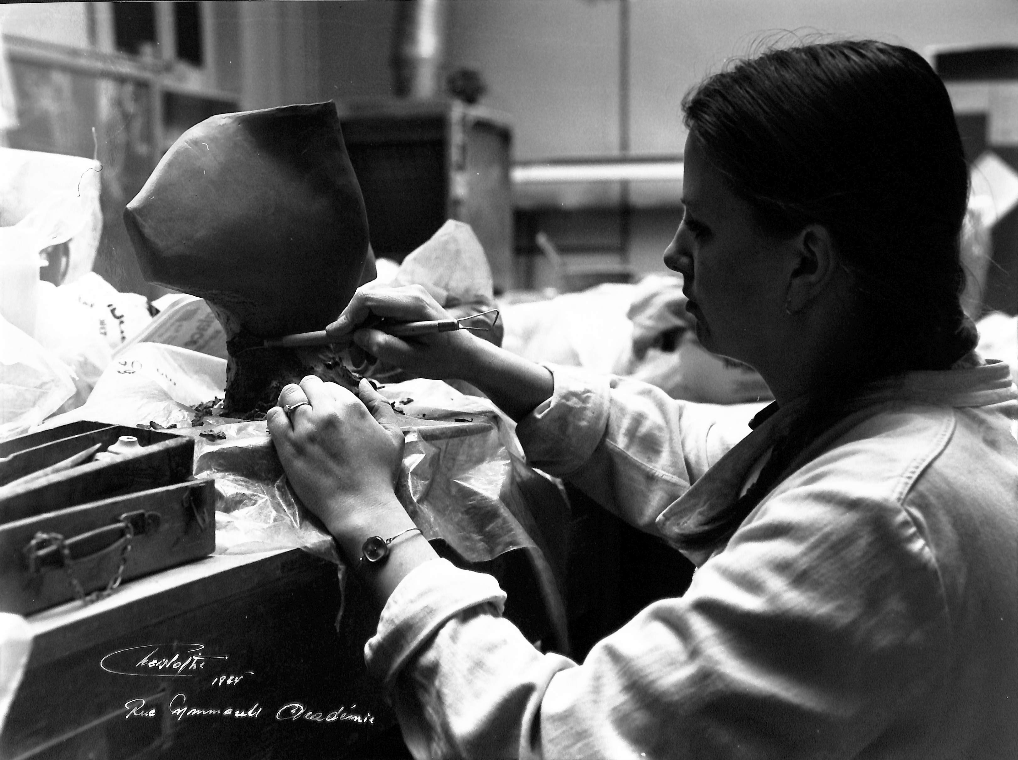 Photo Atelier de sculpture à l'Académie de dessin de Molenbeek-Saint-Jean, photogr. Christophe Wallez, 1984.