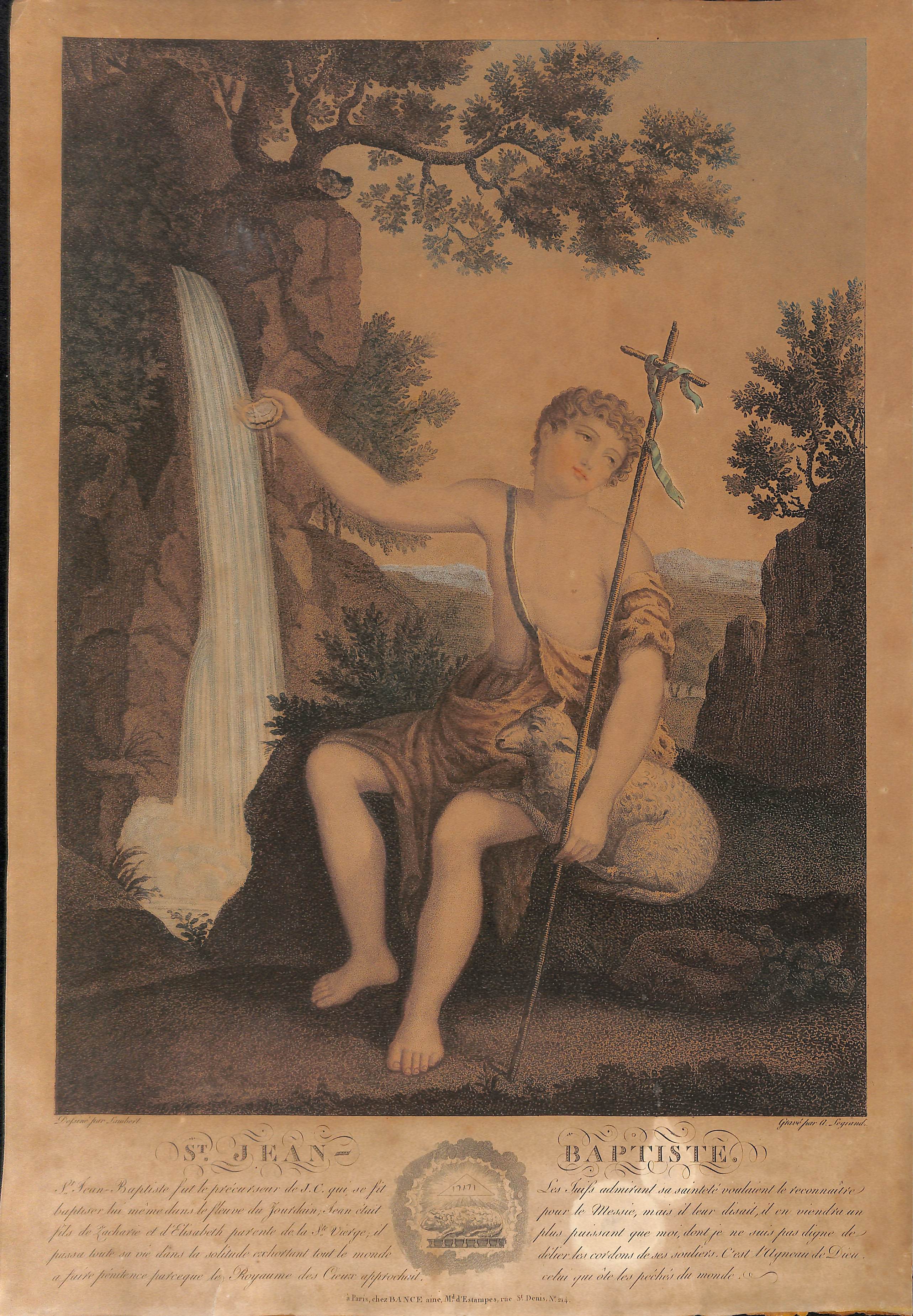 A. Legrand, Saint Jean-Baptiste garçon assis à une source, avec croix et agneau, d'après Lambert, éd. Jacques-Louis Bance aîné (Paris), s.d. [vers 1830].
