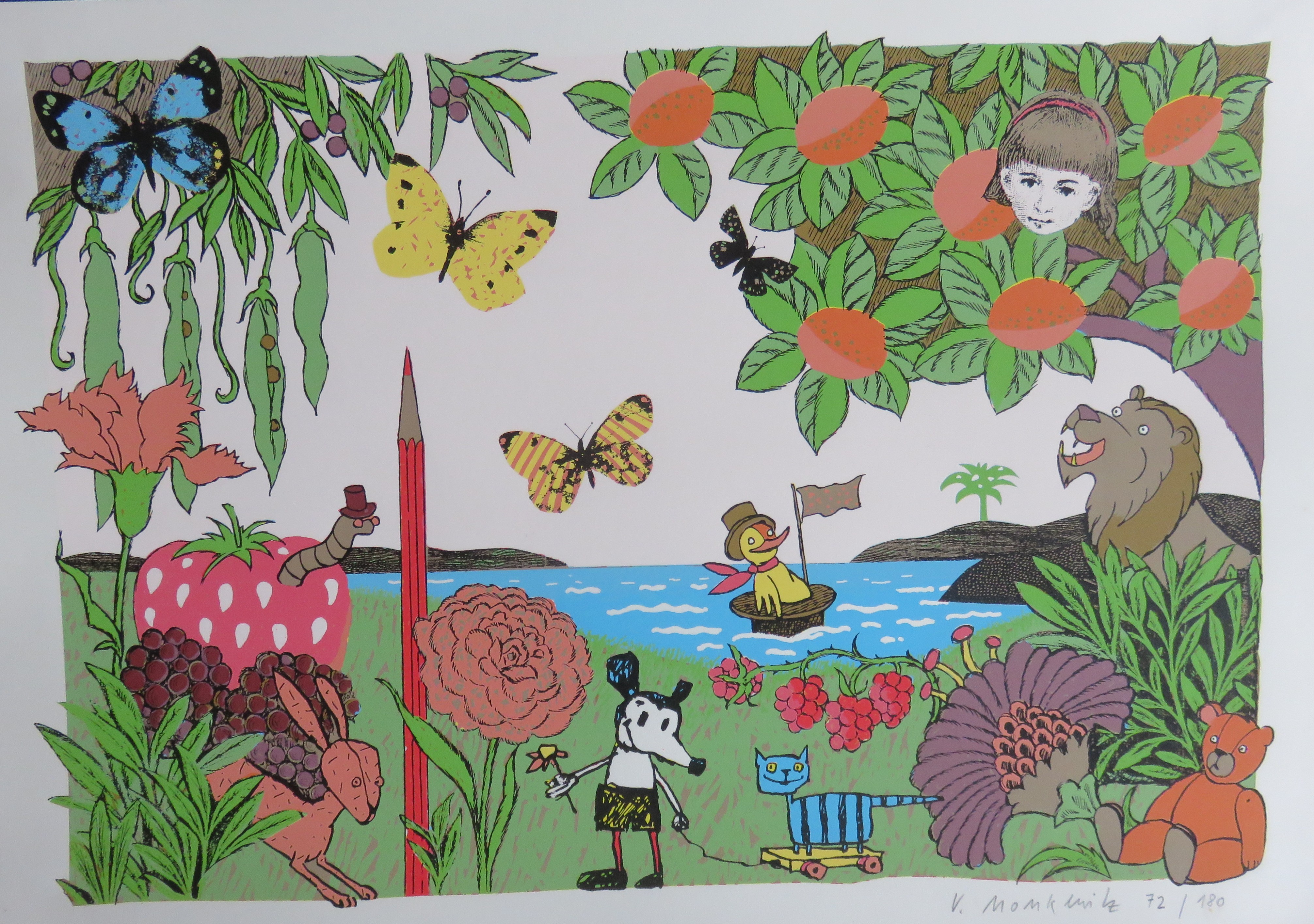 Sérigraphie - Divers animaux au bord de l'eau