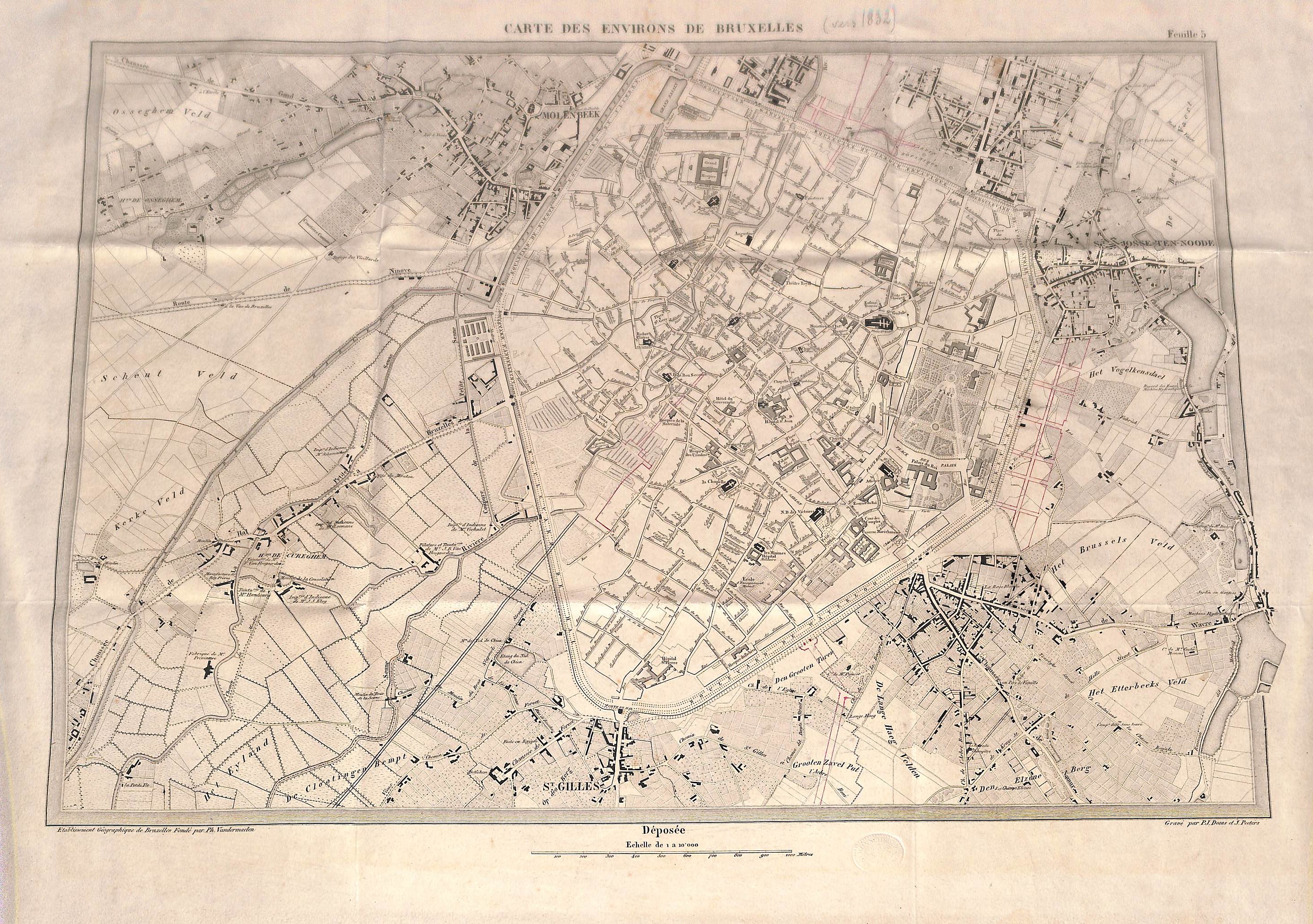 Carte des environs de Bruxelles à l'échelle 1/10.000, éd. Philippe Vandermaelen (Molenbeek-Saint-Jean), s.d. [vers 1832-1835].