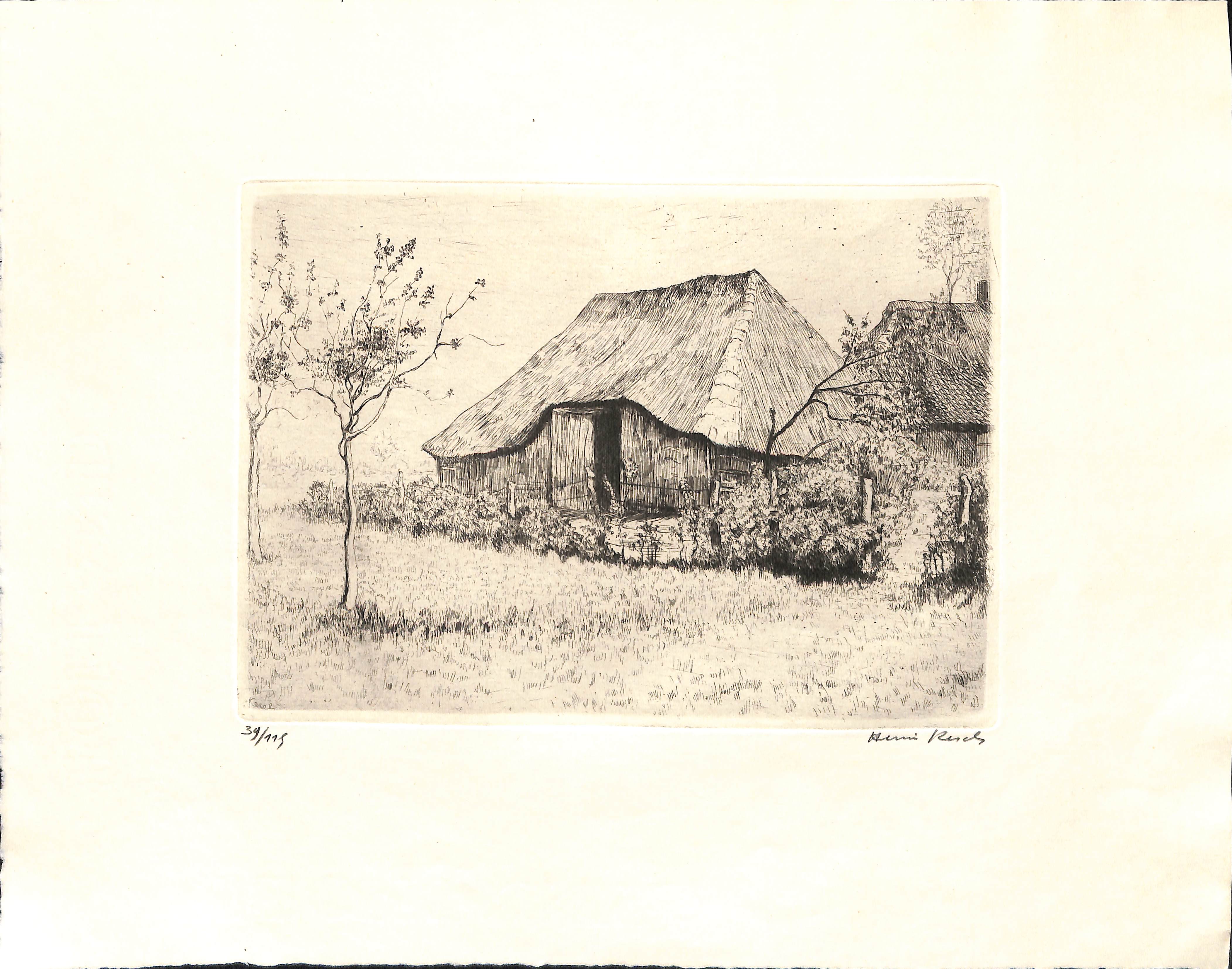 Henri Kerels, sans titre [Vieille ferme], gravure, s.d.