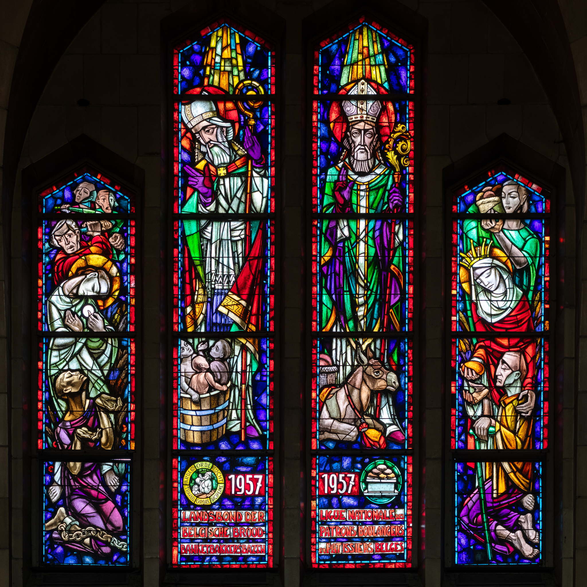 Vitrail offert par la Ligue nationale des patrons boulangers et pâtissiers belges en 1957.