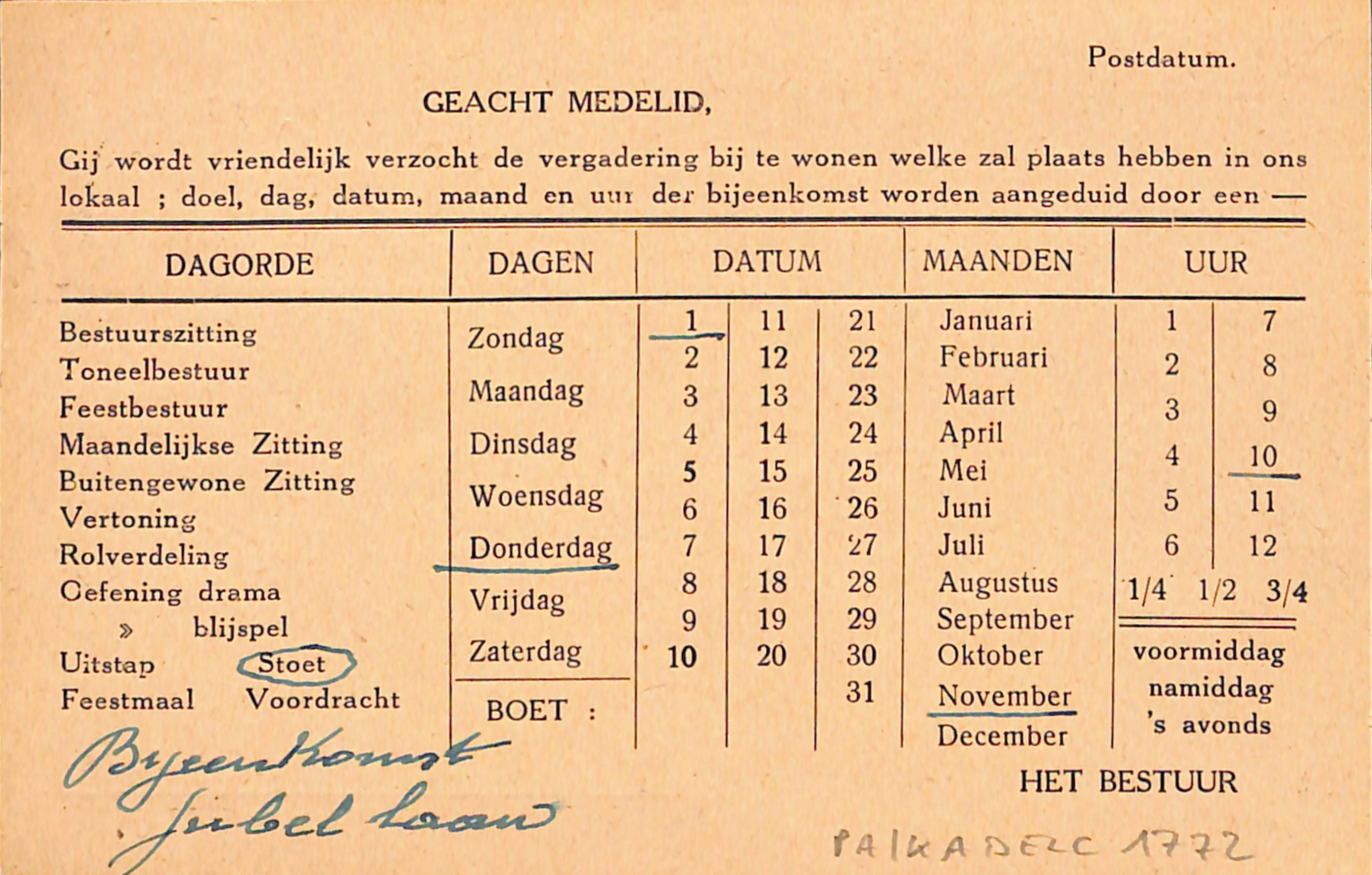 Annonce du calendrier annuel et des différentes activités de la société dramatique.