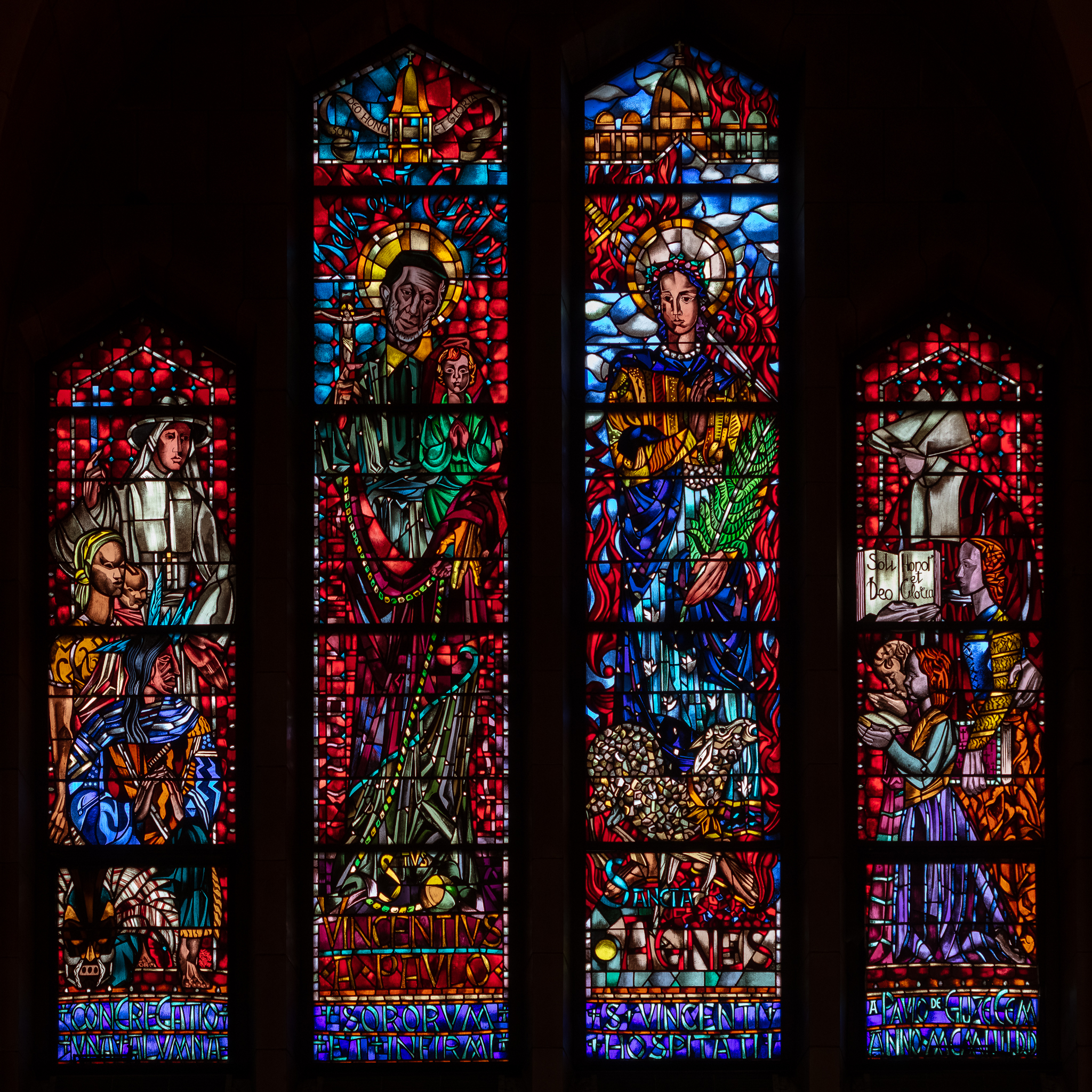 Vitrail de saint Vincent de Paul et sainte Agnès