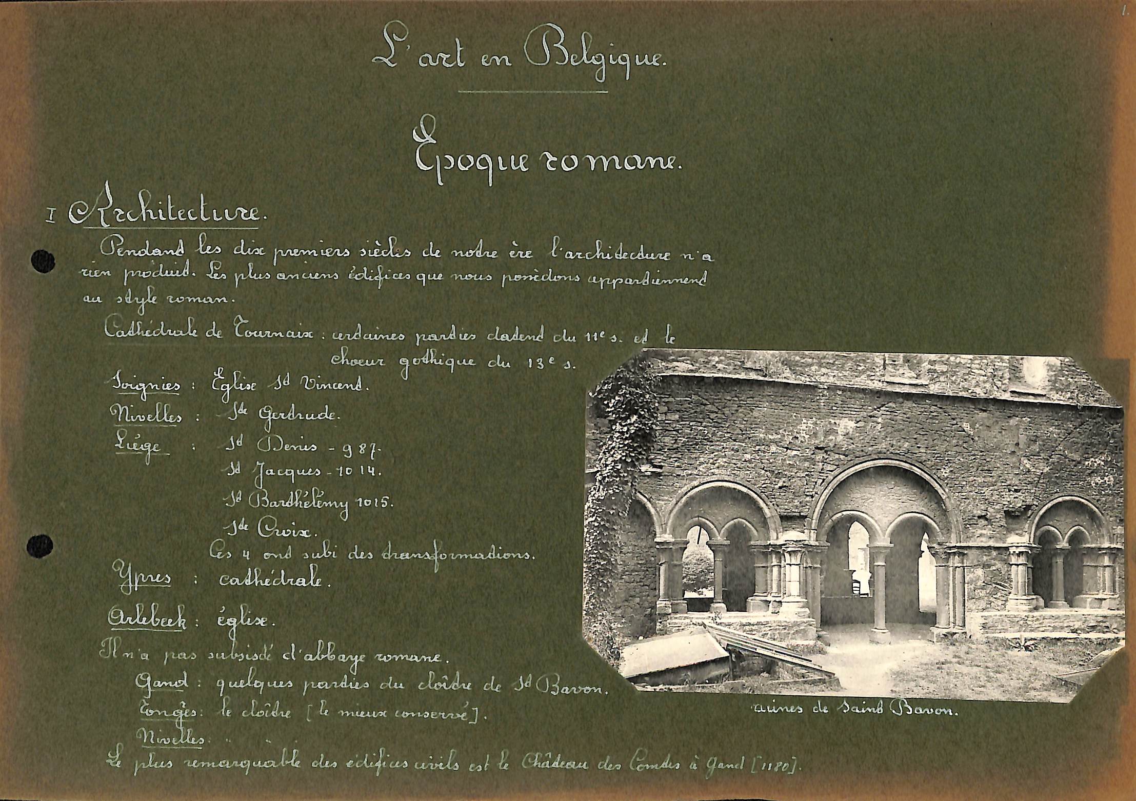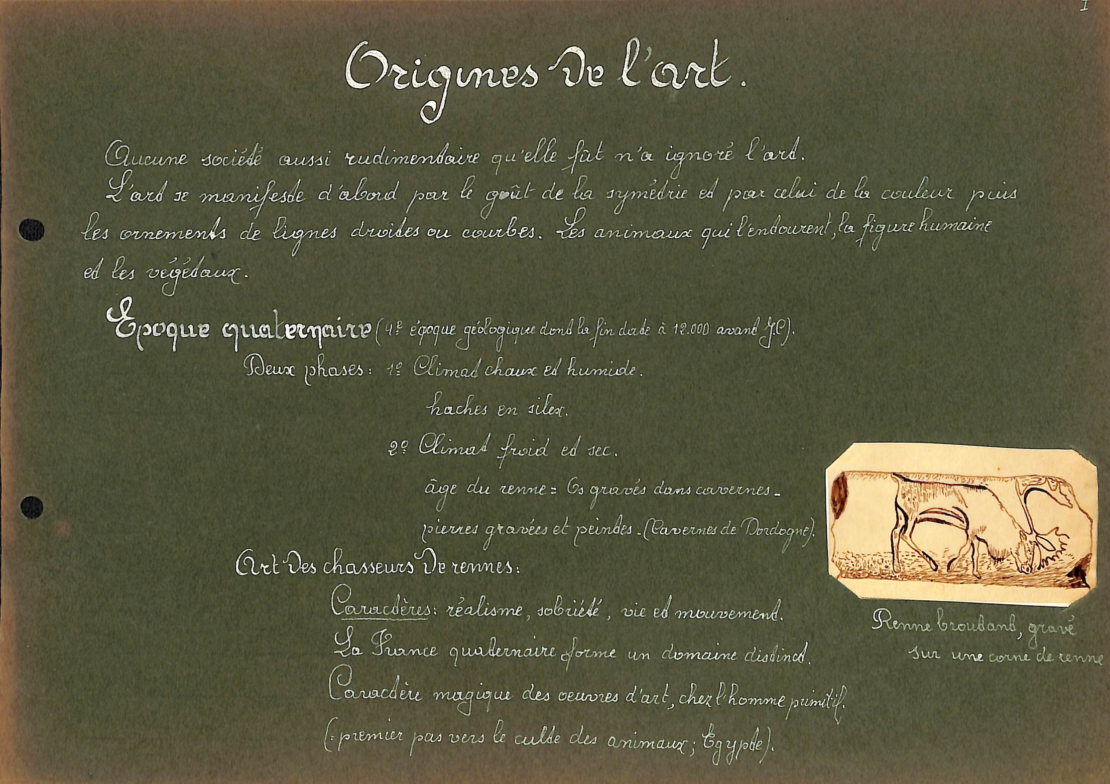 Farde documentaire "Histoire de l'Art" (de la Préhistoire au 18e siècle) de l'enseignante bruxelloise Hélène Eeman, s.d. [début 20e siècle], pag. mult.