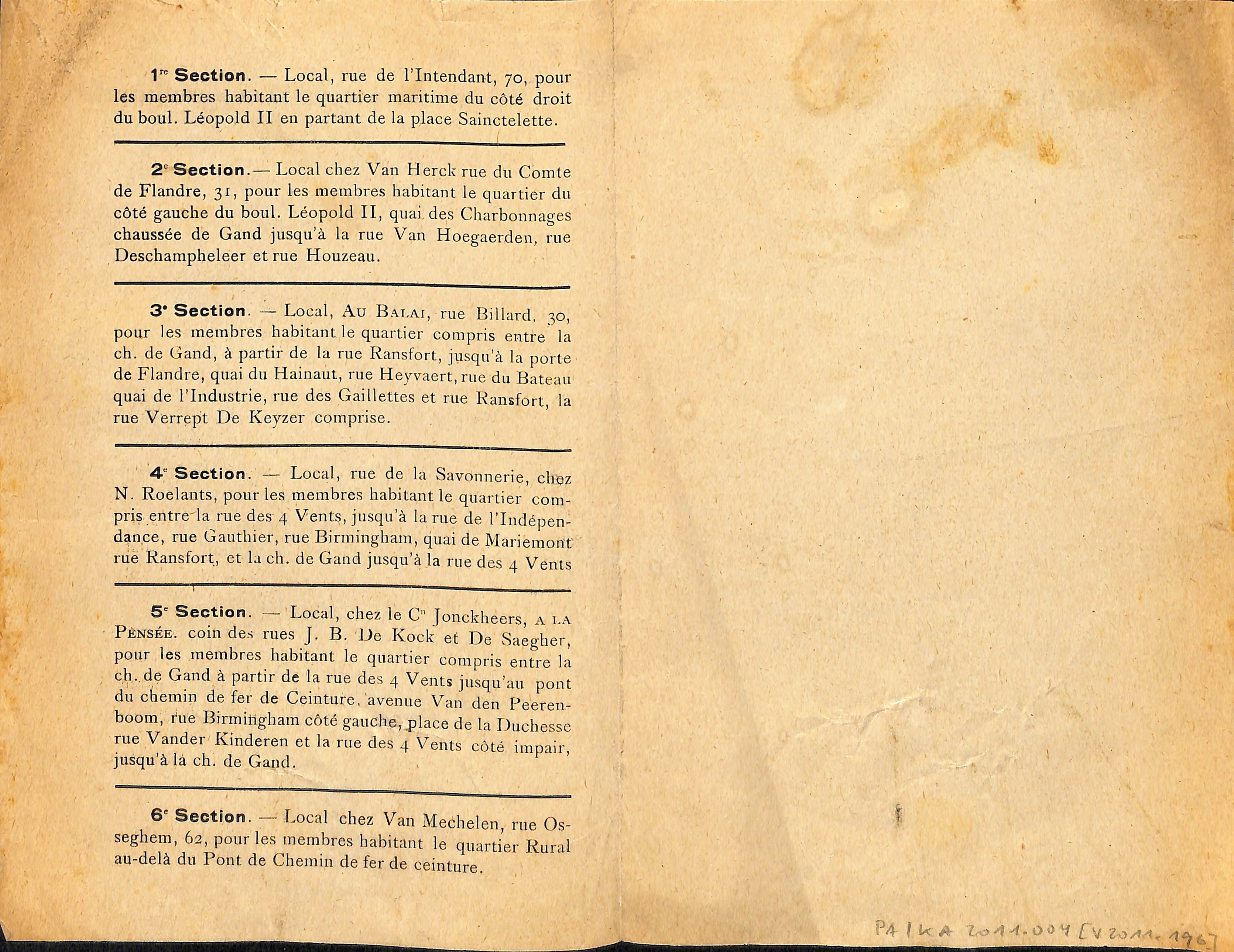 s.d. (Après la Première Guerre mondiale, un café tenu par P. Van Heck [sic !], Rue du Comte de Flandre, 31, mentionné dans le folder (avec la graphie Van Herck), est recensé dans l'édition 1920 de l'Almanach du commerce et de l'Industrie de Bruxelles. )