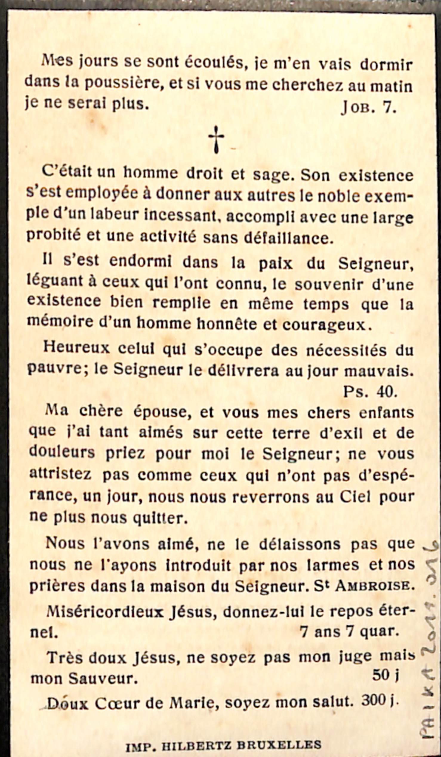 Souvenir pieux Edmond Van Oudenhove, président des hospices civils de Molenbeek-Saint-Jean (Ninove, 1847 - Moortebeek, 1922), impr. Hilbertz (Bruxelles), 1922.