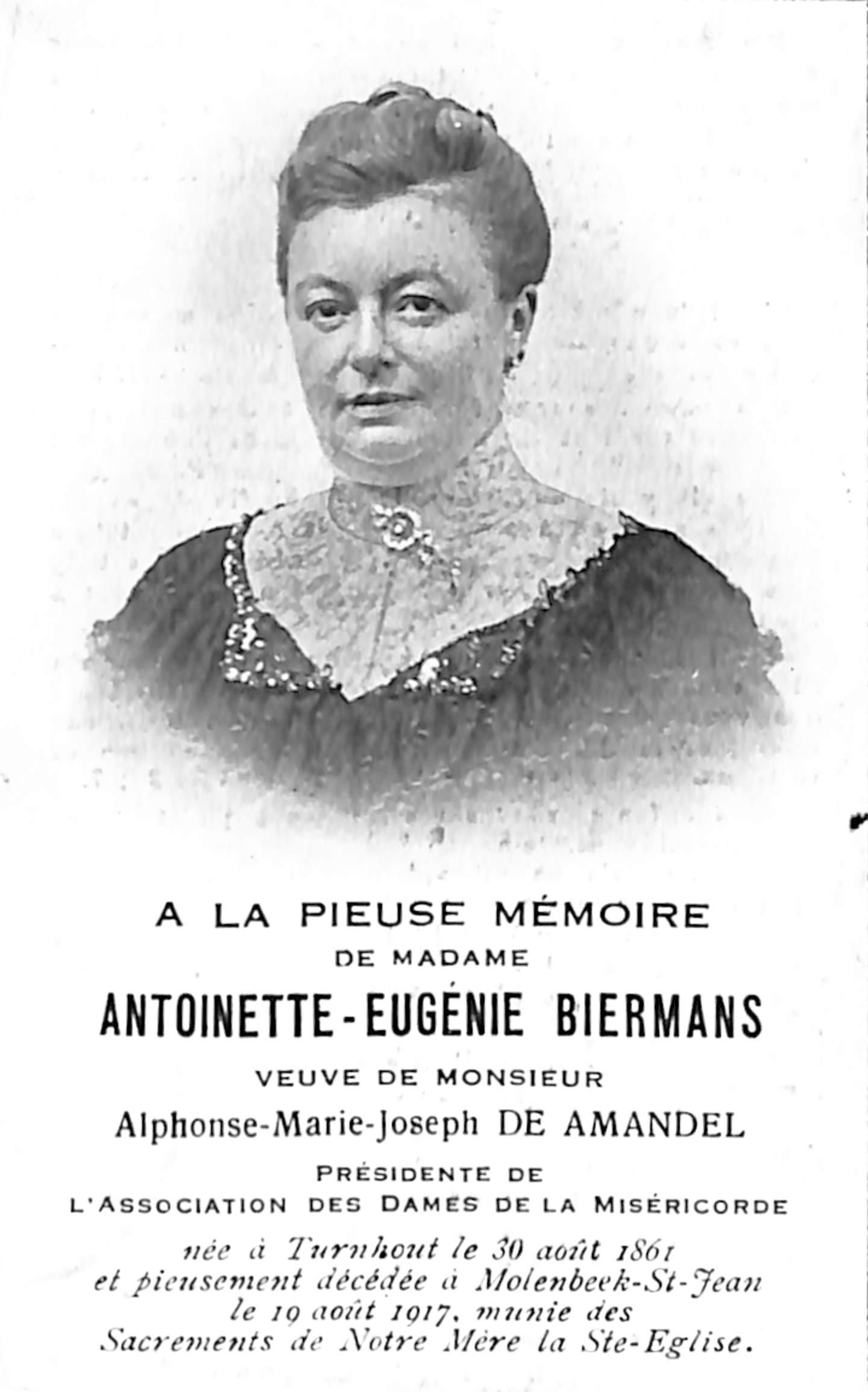 Souvenir pieux Antoinette-Eugénie Biermans, veuve de Alphonse De Amandel (Turnhout, 1861 - Molenbeek-Saint-Jean, 1917), 1917.