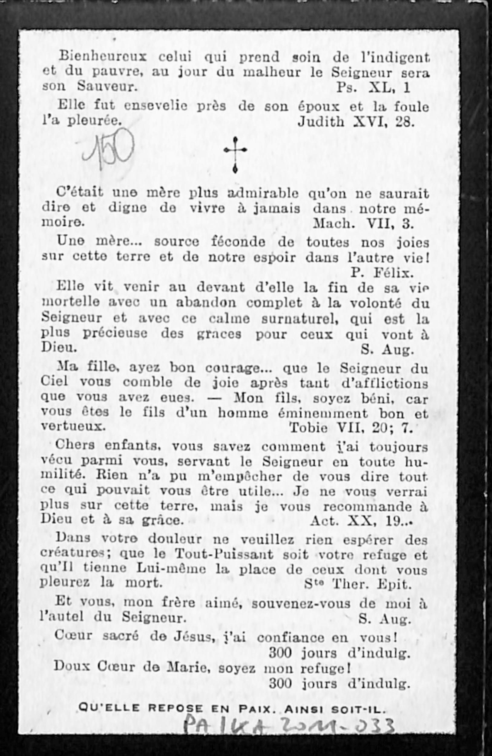La défunte fut présidente de l'Association des Dames de la Miséricorde.