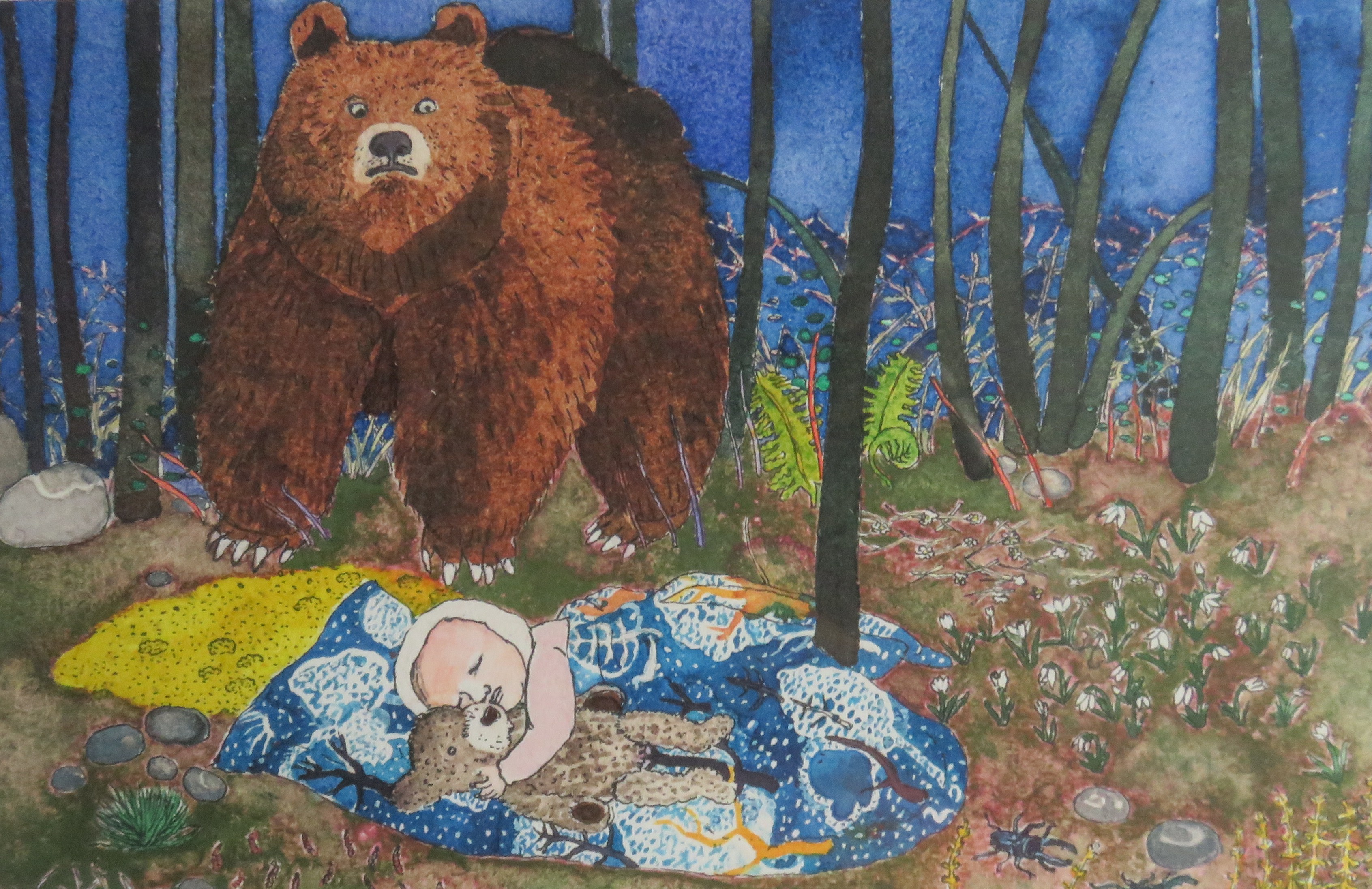 Illustration inédite - Un ours dans la nuit