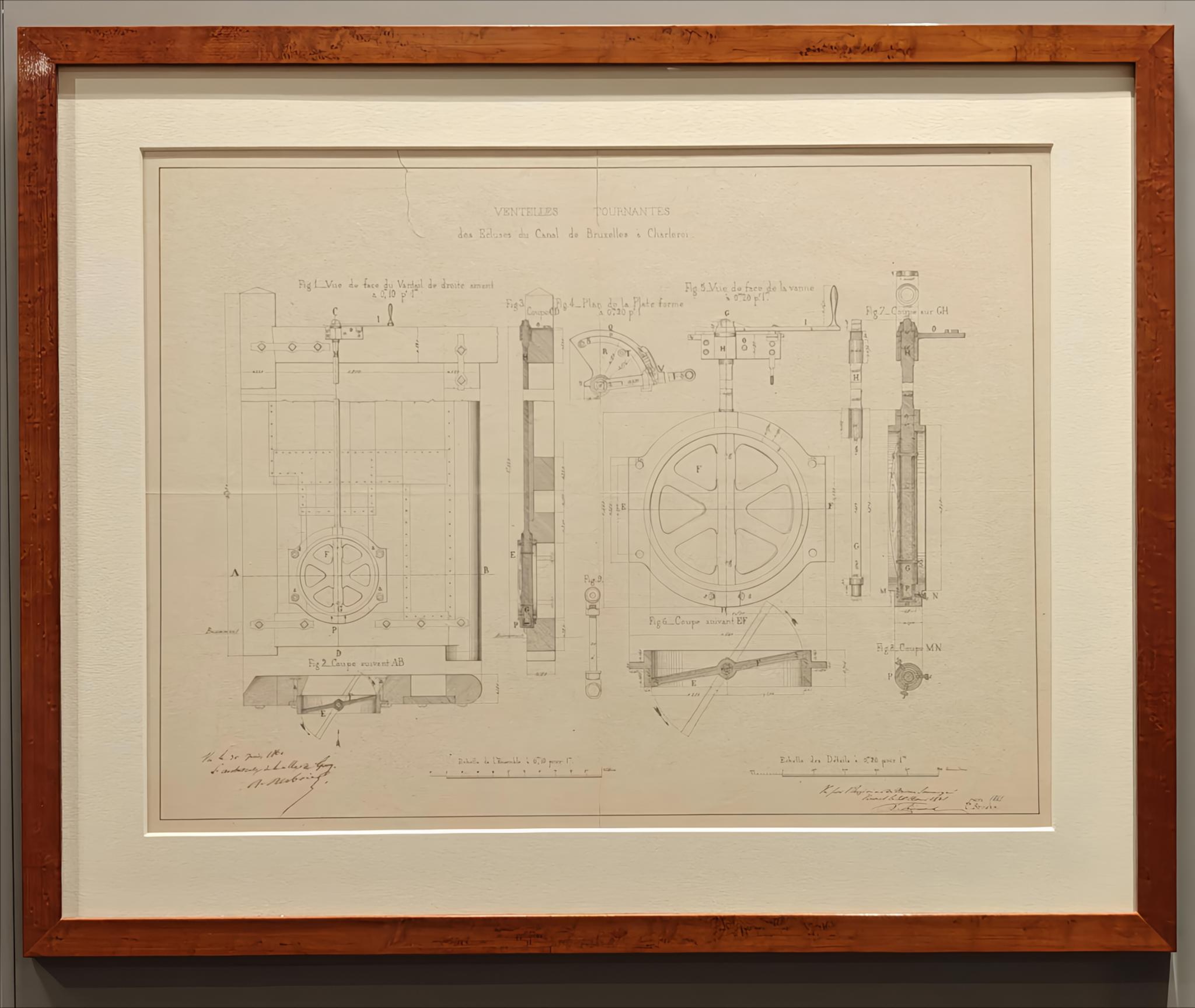 Plan des ventelles tournantes des écluses du Canal de Charleroi, 1861.