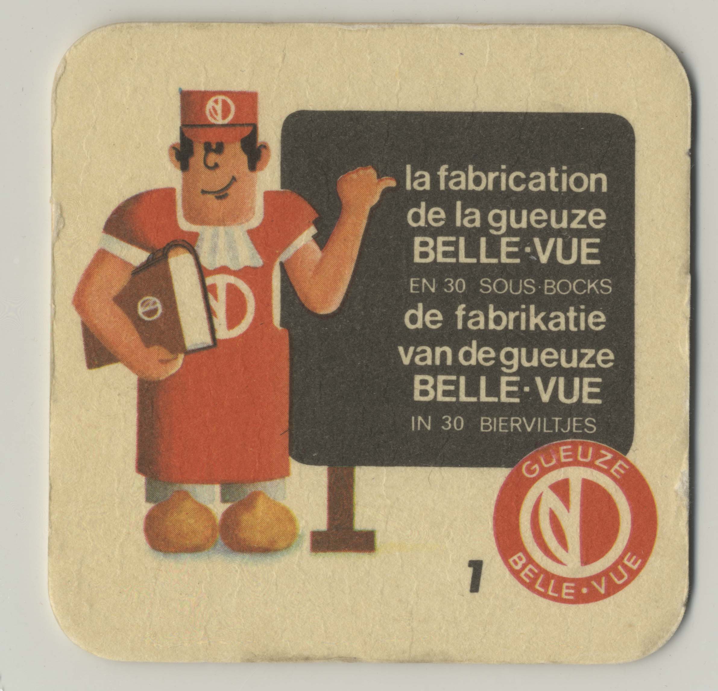 Sous-bock publicitaire Brasserie Belle-vue illustrant la fabrication de gueuze, 1, s.d.