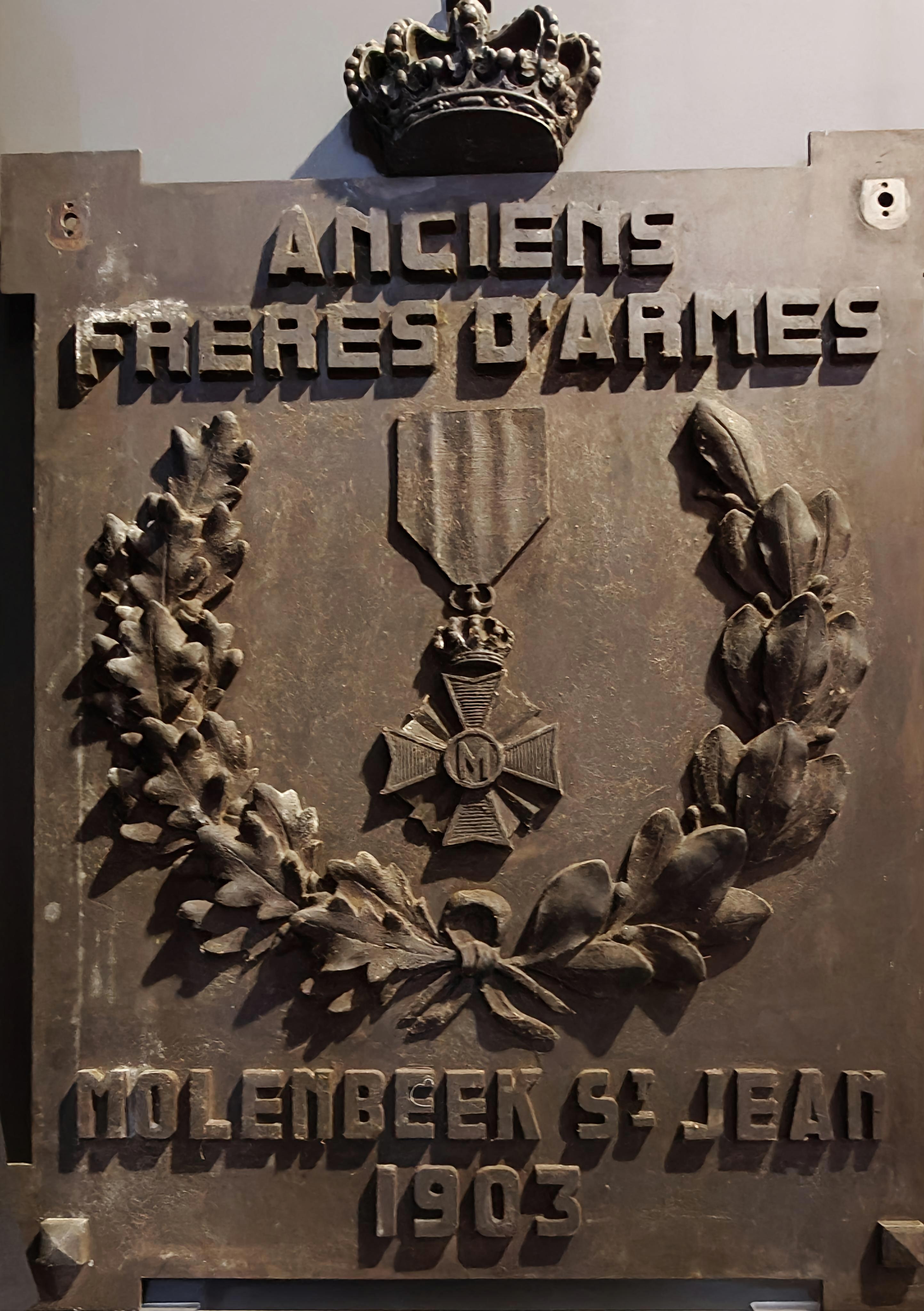 Plaque commémorative Anciens Frères d'armes de Molenbeek-Saint-Jean, métal, 1903.