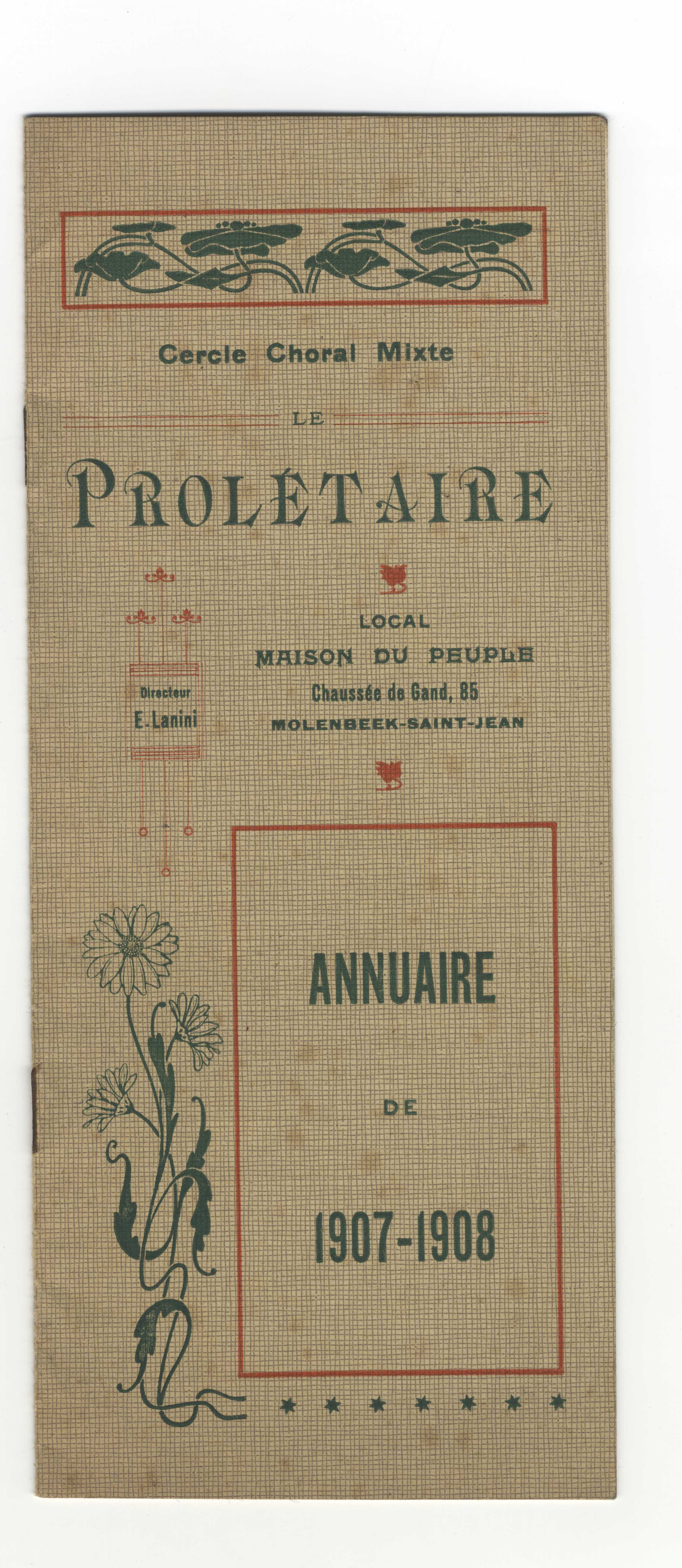 Annuaire du Cercle choral mixte Le Prolétaire 1907-1908 (Molenbeek-Saint-Jean), 1907.