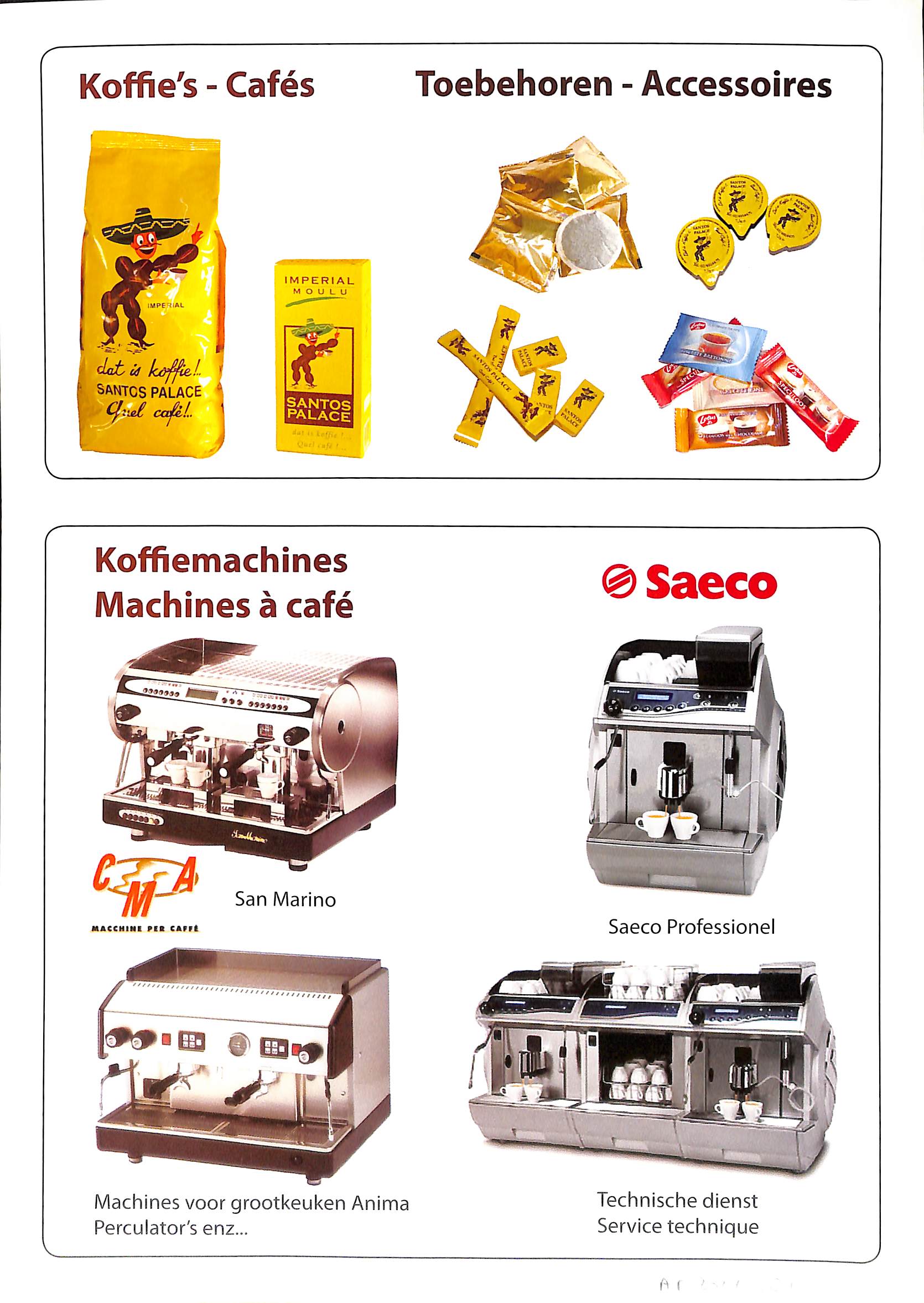 Affiche publicitaire Torréfacteur de café Santos Palace, Rue de Manchester, 32-34 (Molenbeek-Saint-Jean), s.d. [2e moitié 20e siècle].
