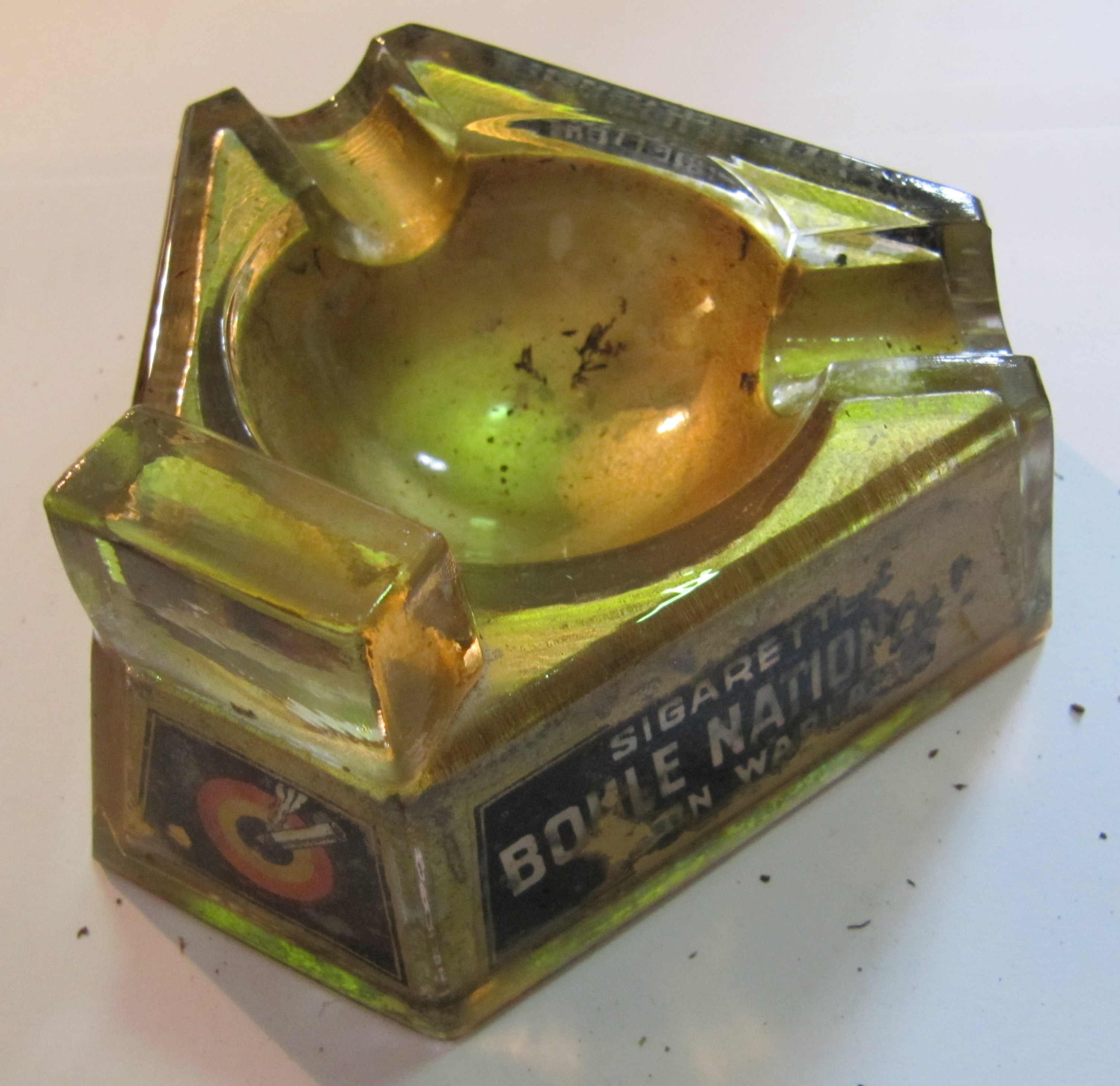 Cendrier publictaire Cigarettes Boule nationale Odon Warland, verre, s.d. [20e siècle].