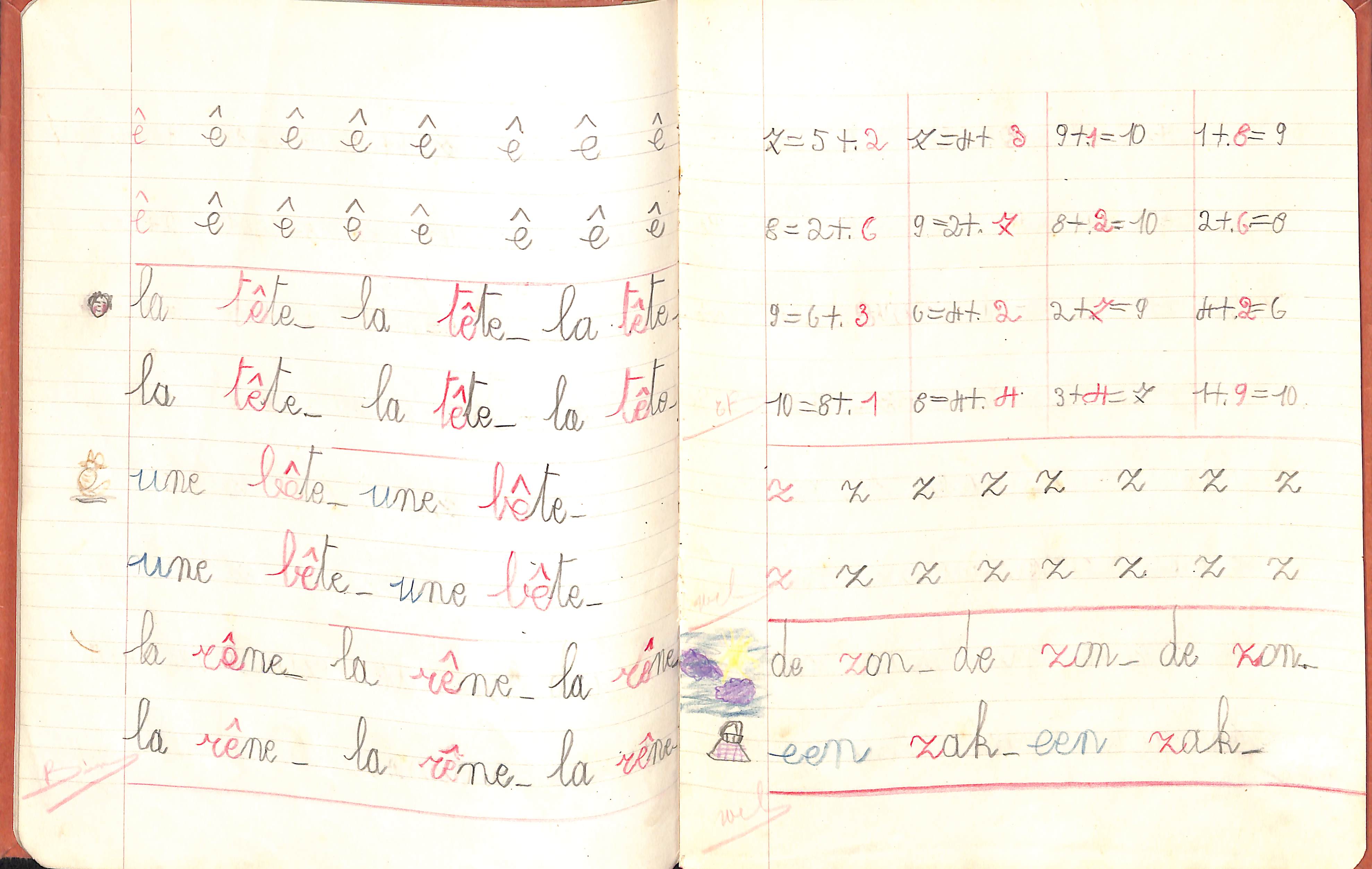 Cahier scolaire Marie-Jeanne Vuyge (français, néerlandais et calcul), Molenbeek-Saint-Jean, s.d. [vers 1938-1939].