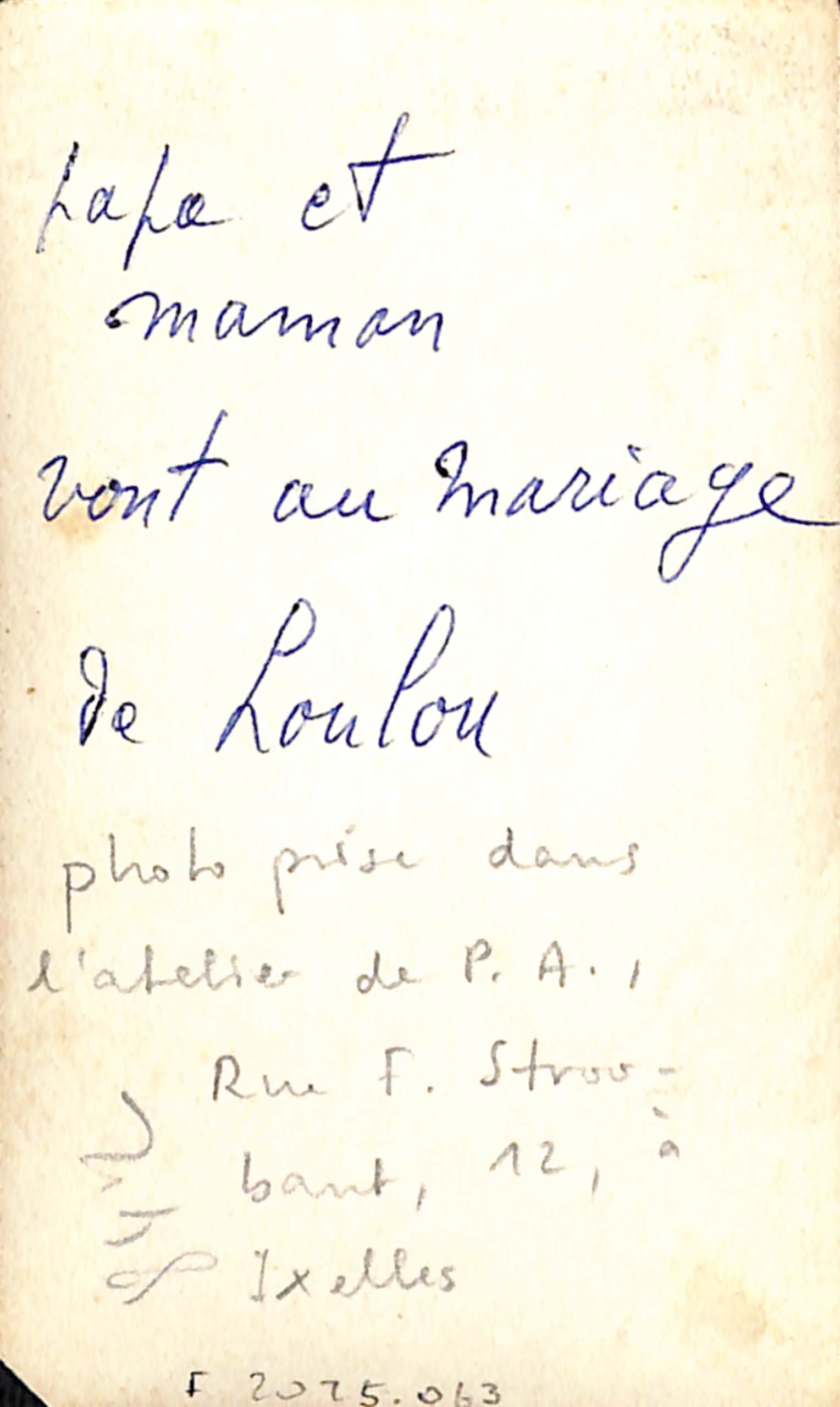 "photo prise dans l'atelier de P.A., Rue F. Stroobant, 12, à Ixelles" (légende manuscrite de Sven Steffens au verso)
