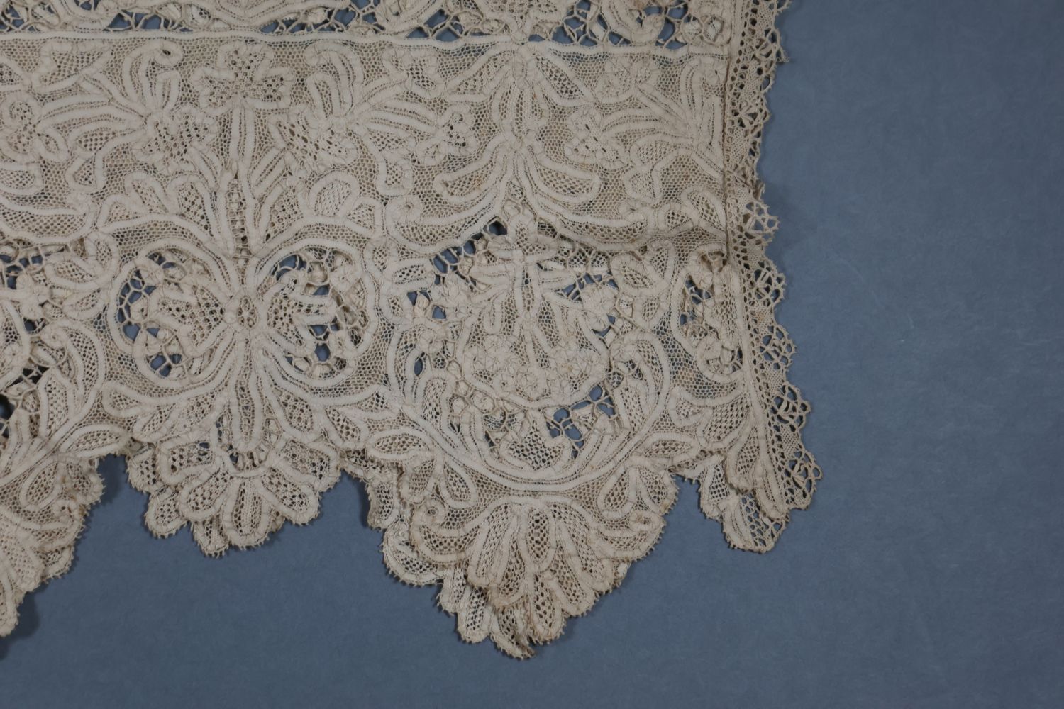 Dentelle mixte, bords à l'aiguille et motifs aux fuseaux (Milan et Lacet)
