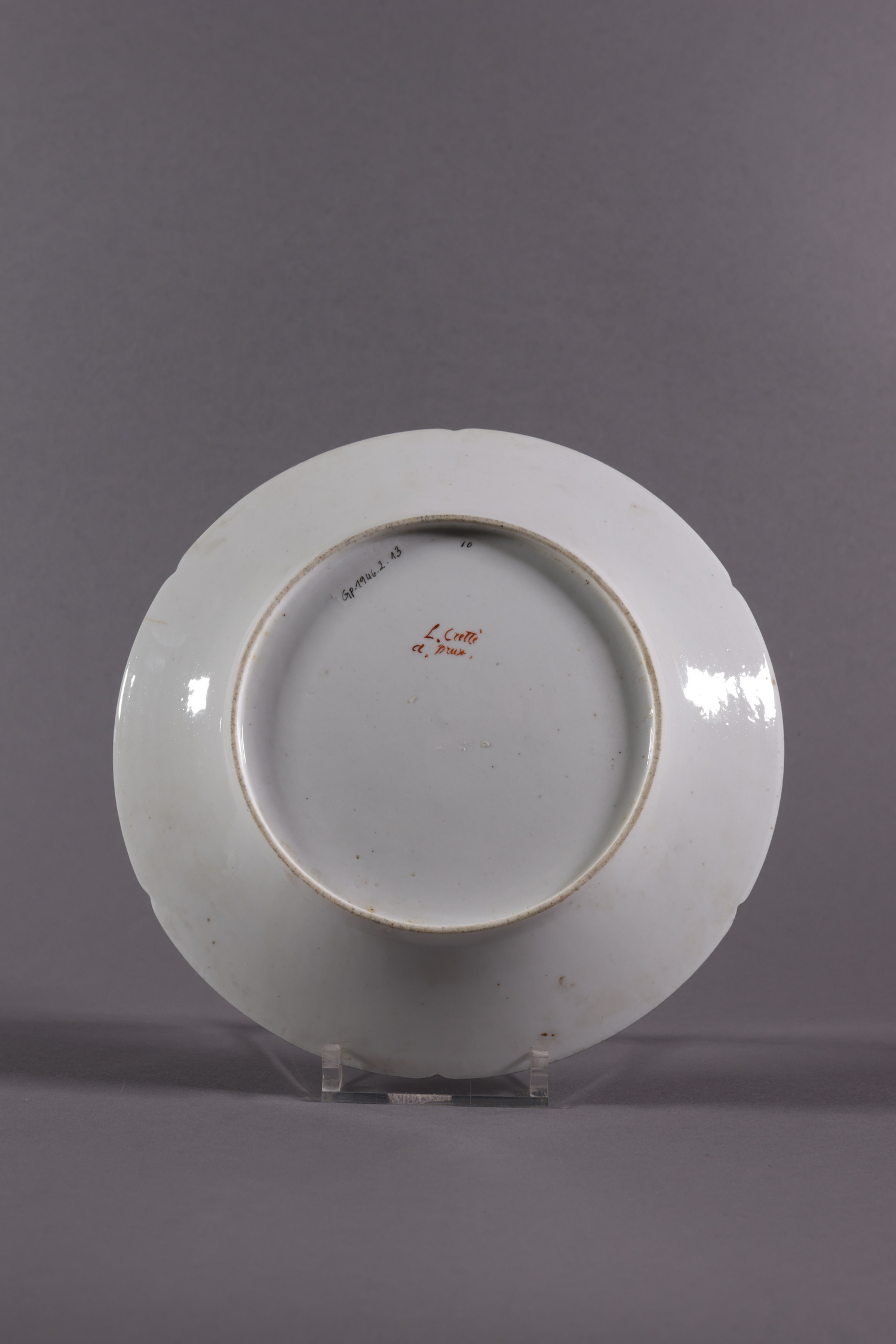 Assiette aux oiseaux d'après Buffon - Gros-Bec appellé queue en éventail de Virginie, femelle