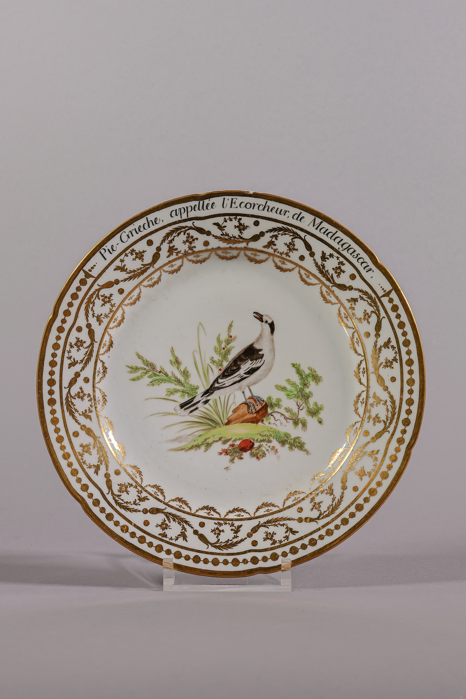 Assiette aux oiseaux d'après Buffon - Pie-grièche, appellée l'Écorcheur, de Madagascar