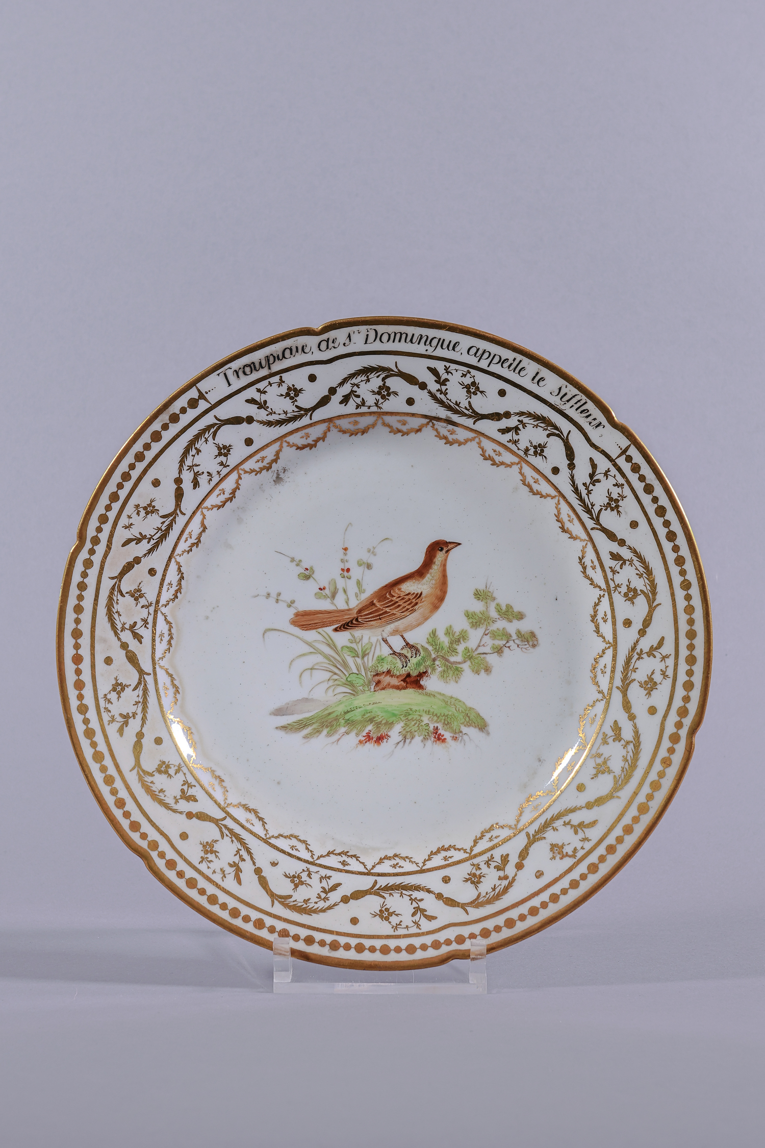 Assiette aux oiseaux d'après Buffon - Troupiale de Saint Domingue, appelé le Siffleur