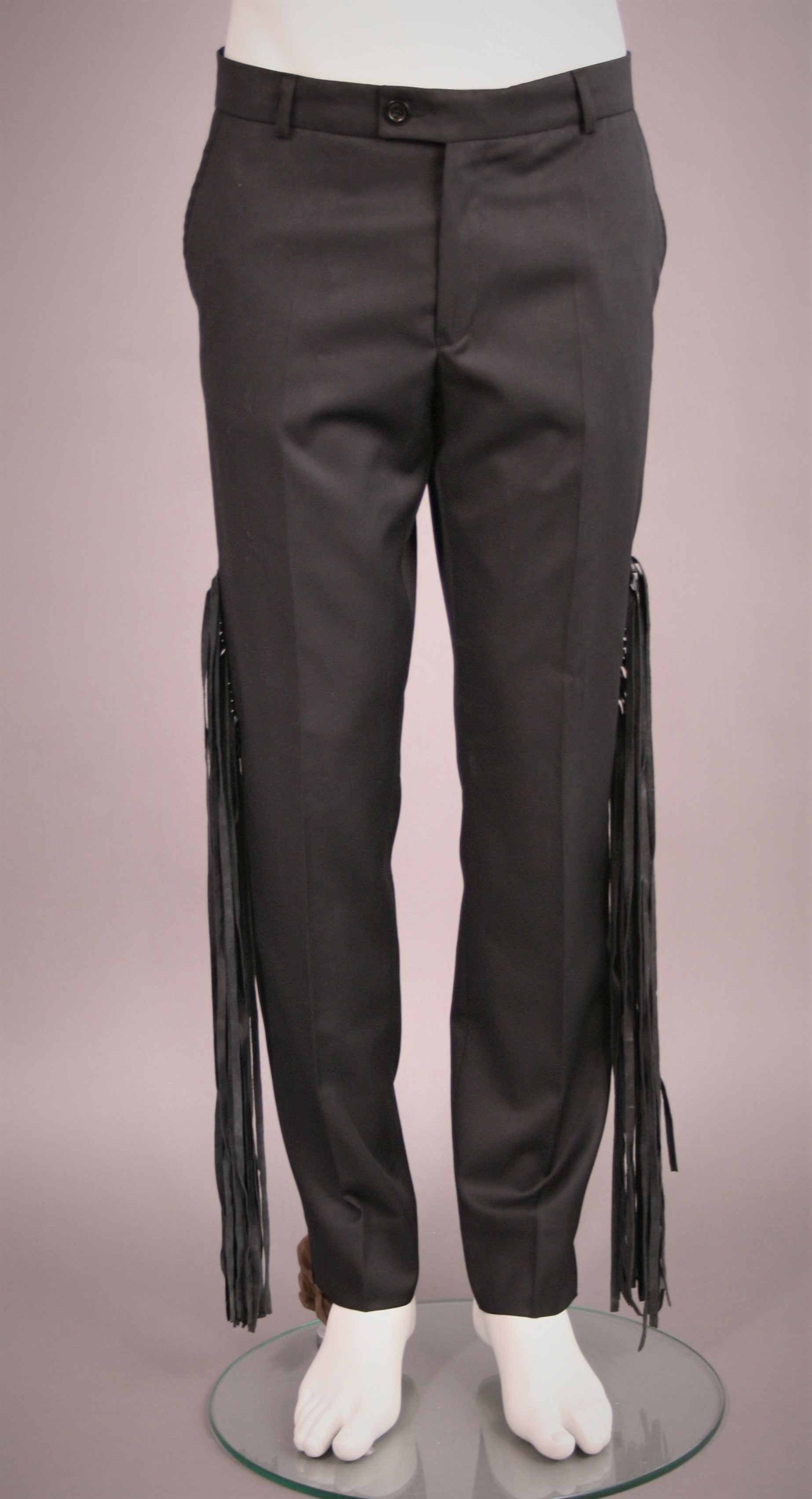 Sergé de laine, franges en cuir