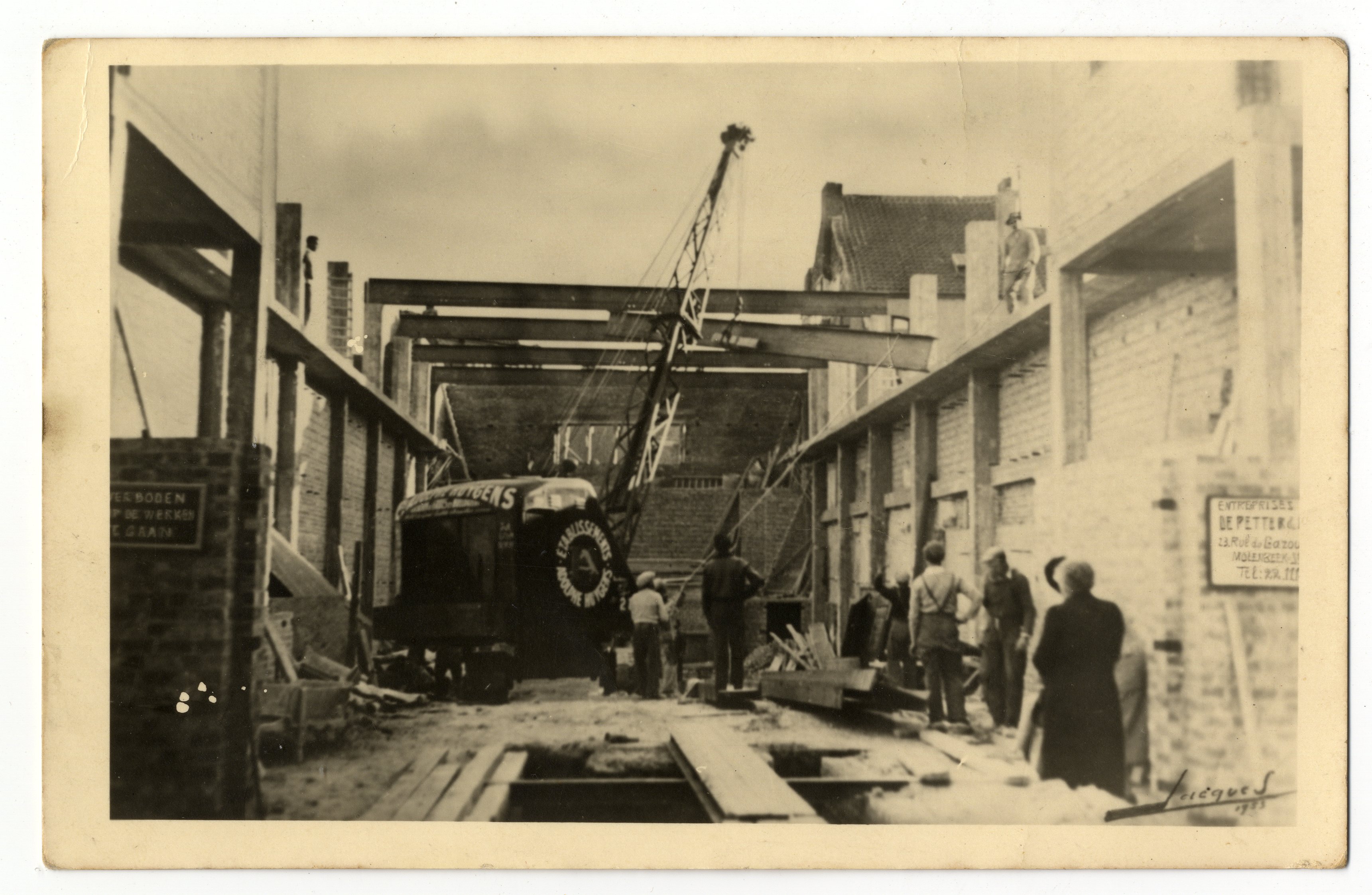 Carte photo Bâtiment industriel en chantier à Molenbeek-Saint-Jean, photogr. anon., s.d. [années 1940-1950 ?].