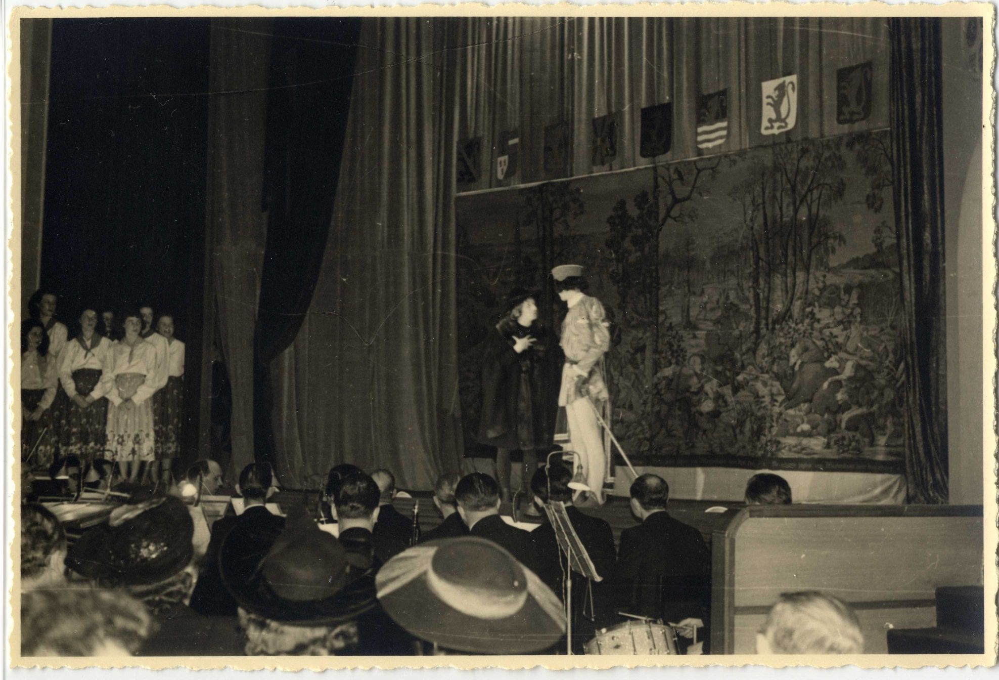 Photo Théâtre scolaire sur la scène du cinéma Crystal (Molenbeek-Saint-Jean), photogr. G. François (Koekelberg), 1948.
