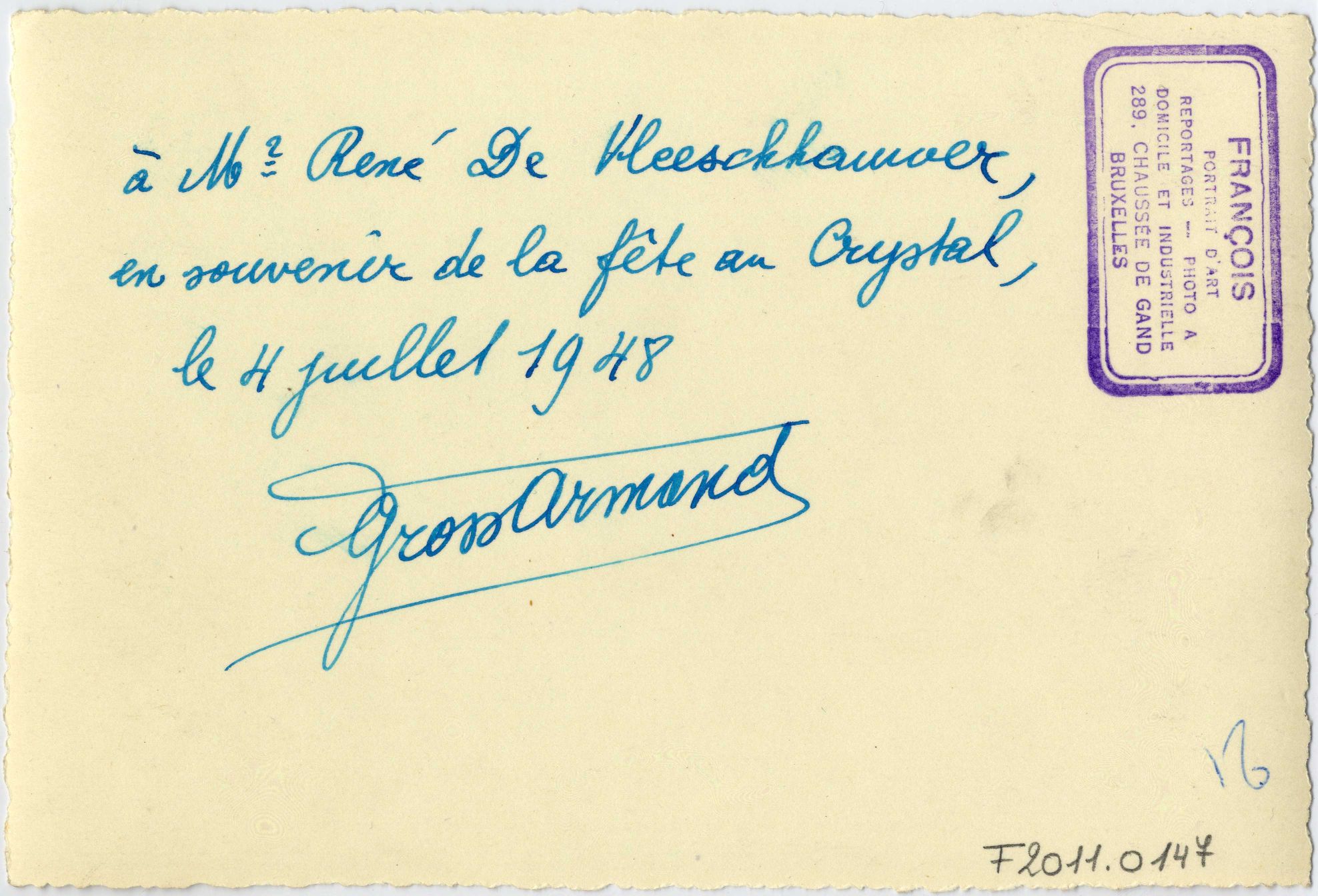 "à Mr René De Vleeschhauwer, en souvenir de la fête au Crystal, le 4 juillet 1948